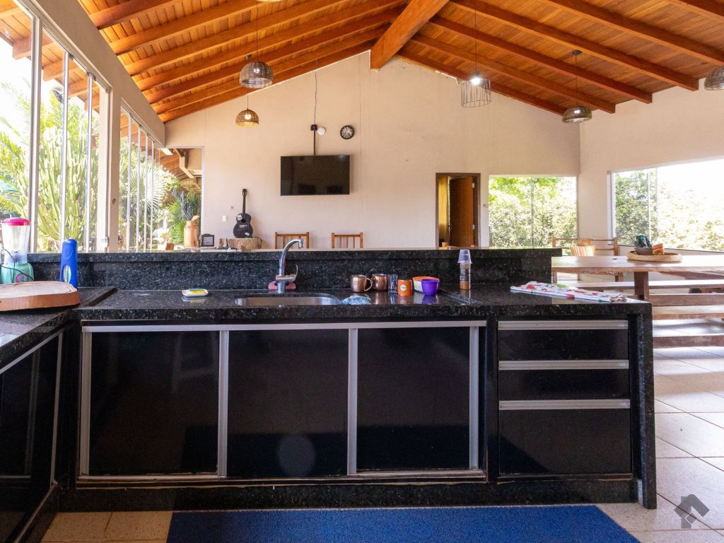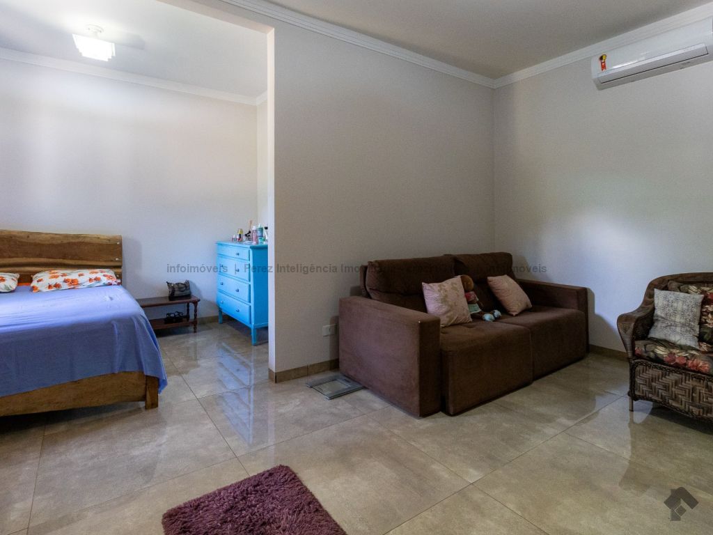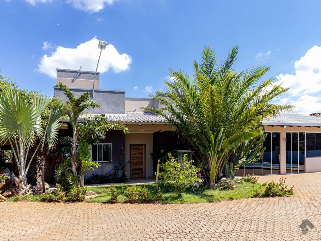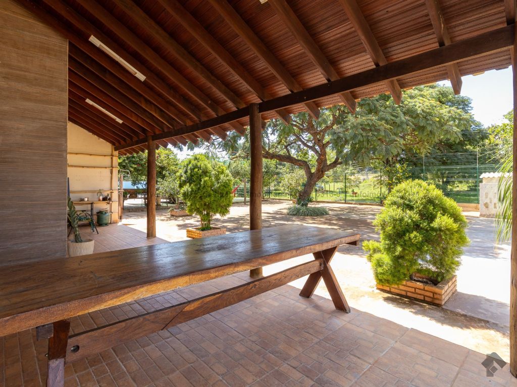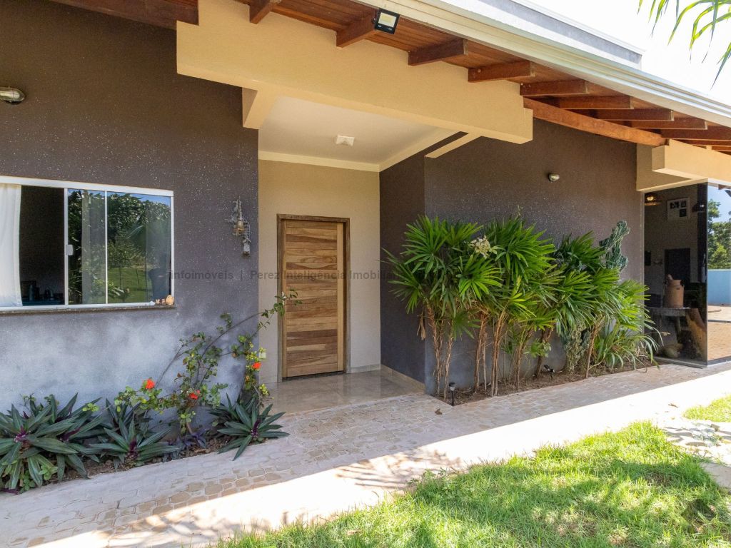 Ótima localização a 6 km da UCDB. Tendo: casa principal: 01 sala de estar, 01 cozinha ampla planejada, 02 quartos, 01 banheiro social, 01 varanda ampla. Casa secundária/área de lazer: 02 suítes, 01 banheiro social, 01 área gourmet, 01 churrasqueira, 01 depósito, 01 área de serviço, 04 vagas de garagem cobertas. Infraestrutura e diferenciais: 01 piscina, 02 poços semi-artesianos, 01 pomar, 01 placa solar de 1200 W, 04 baias para cavalos com 12 metros, 01 lago de peixes com cascata, 07 postes com iluminação interna, cercada com tela alambrada de 2 metros, frutas do cerrado preservadas.