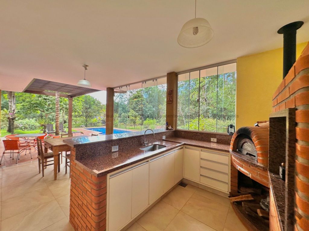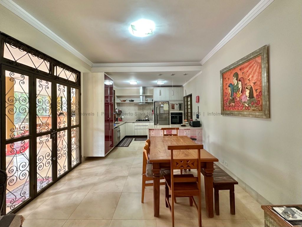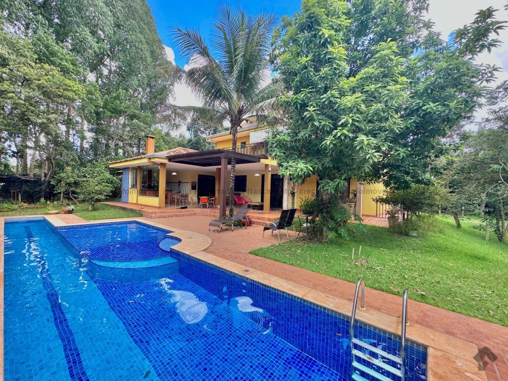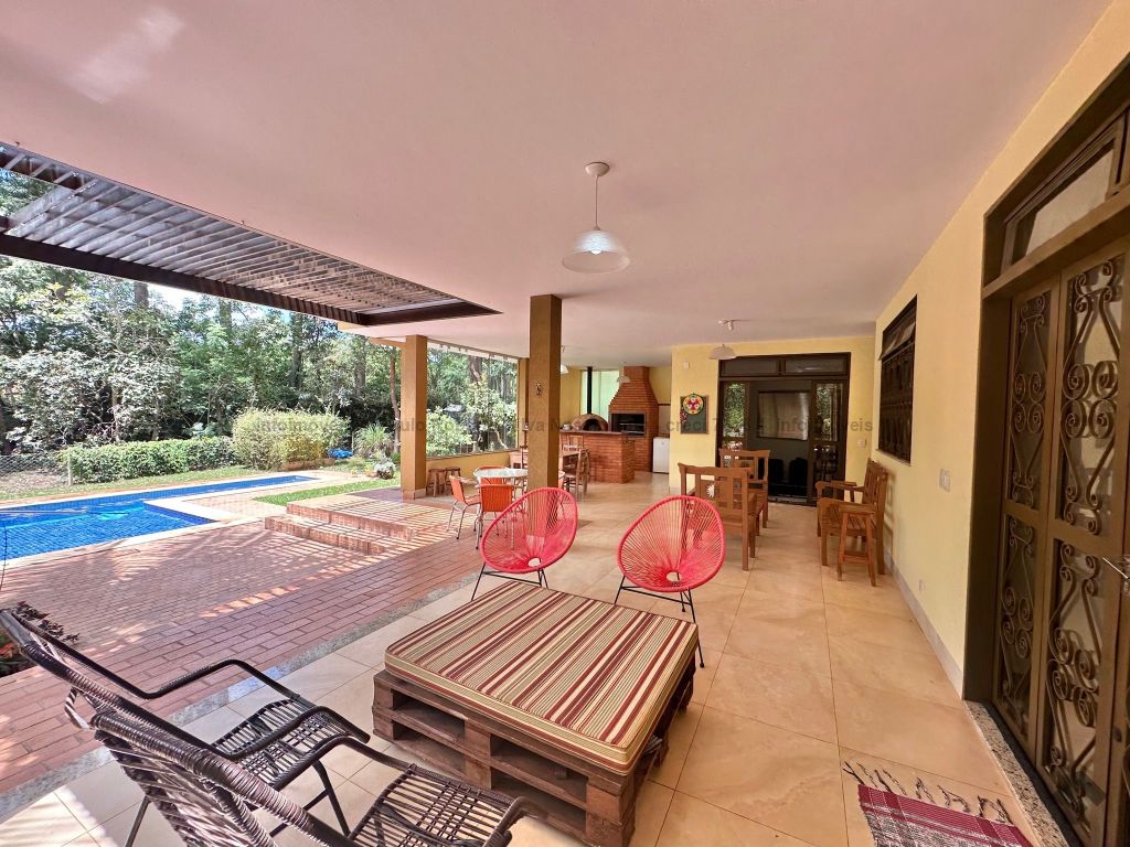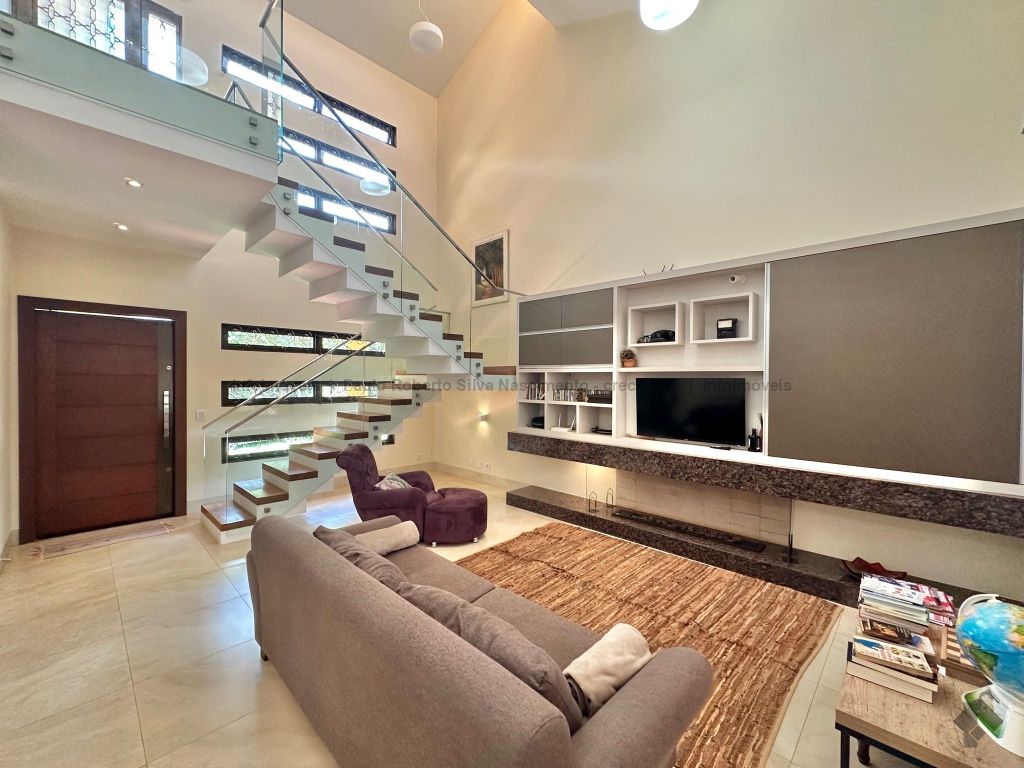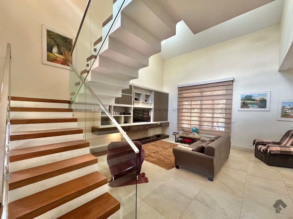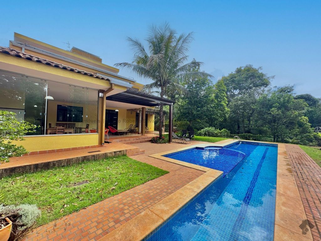 Piso térreo conta com sala de estar com pé-direito duplo e lareira, suíte espaçosa, sala de jantar, sala de TV, cozinha funcional, área de serviço e uma ampla varanda integrada à área externa. Piso superior tem uma suíte master com terraço e closet, dois dormitórios adicionais, banheiro social e sacada com vista privilegiada. O lazer é completo, com uma piscina de raia, espaço gourmet e banheiro de apoio.