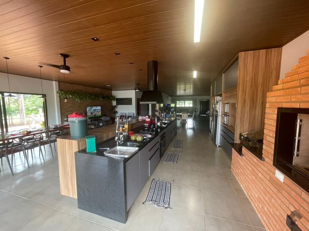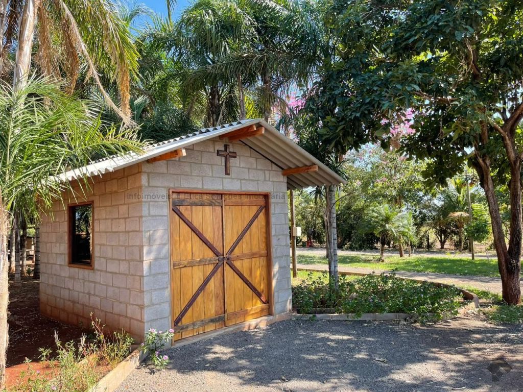 A casa sede possui 15 x 20 m = 300 m², com 04 suítes, sendo uma master com closet e armários embutidos, 03 quartos, piscina, cozinha e área gourmet. Há uma outra casa com 140 m² para receber seus convidados, de alvenaria, com 02 suítes, sala e cozinha. Na propriedade há criadouro de galinhas, 03 piquetes para criação de ovinos, todos telados e 3.000 m² de grama plantada com irrigação programada automatizada. São 02 pomares com árvores frutíferas já produzindo e sistema de monitoramento.
