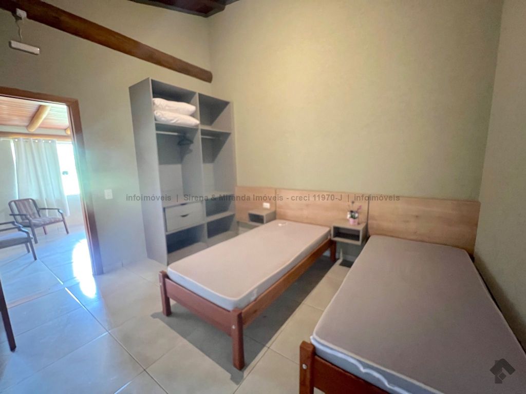 São sete quartos com 55 leitos, refeitório e auditório (completos) para acomodar e atender 100 pessoas, cozinha industrial, piscina adulto e infantil, estacionamento, casa de administração.