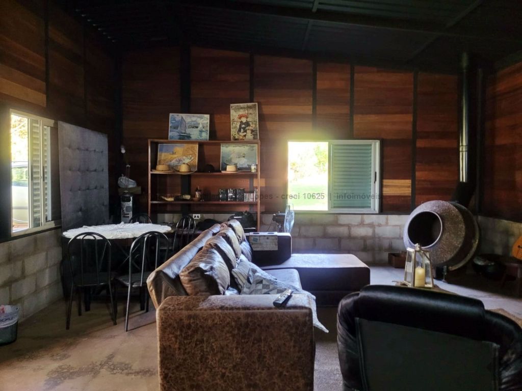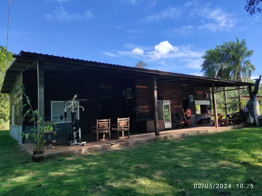 Excelente chácara contendo 5.000m², toda cercada, com casa modelo norte americano, sendo em metal e madeira, contendo, varanda lateral, sala ampla, 2 quartos, banheiro, cozinha e área gourmet. Além de muita vegetação, tanque para peixes, jacuzzi, e ao fundo rio limitando a propriedade.