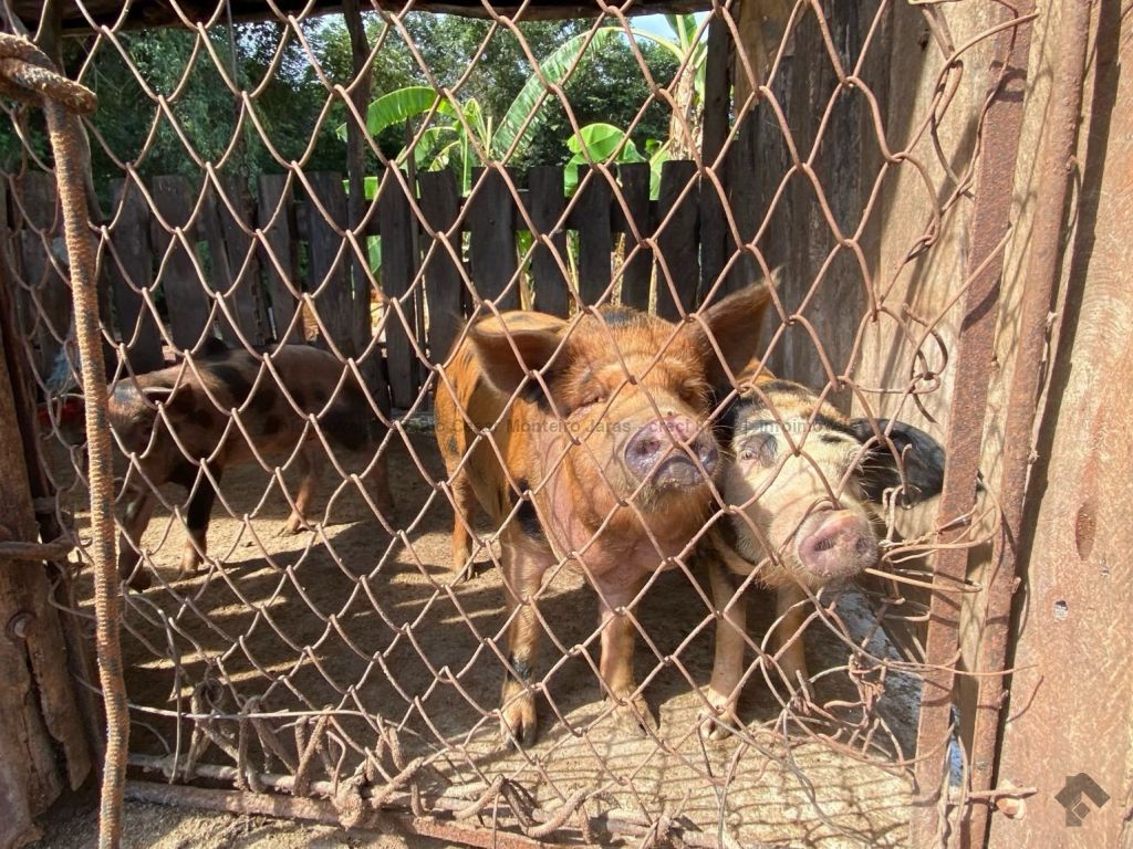 Área toda formada e plana com uma casa com 4 quartos, banheiro, cozinha, fogão a lenha e churrasqueira, árvores frutíferas, dois lagos com peixe, chiqueiro, aptidão dupla, imóvel com preço a baixo de mercado.