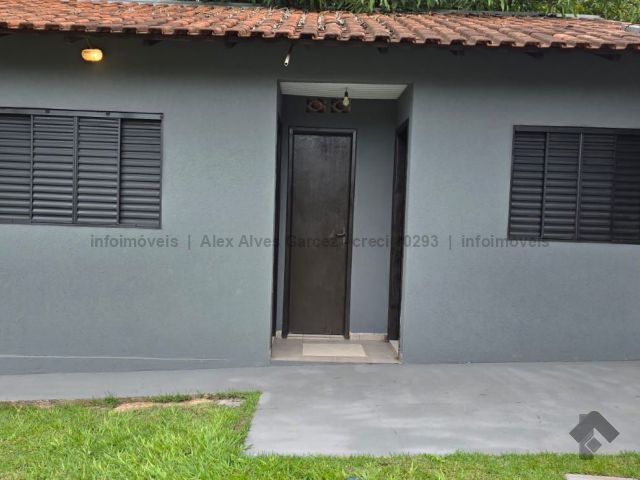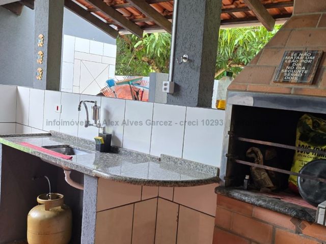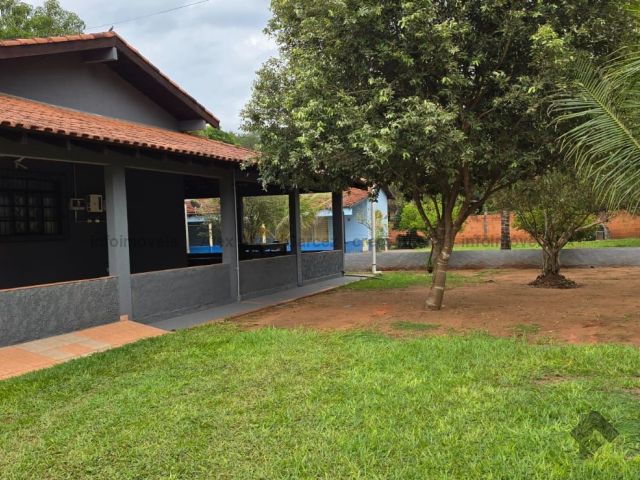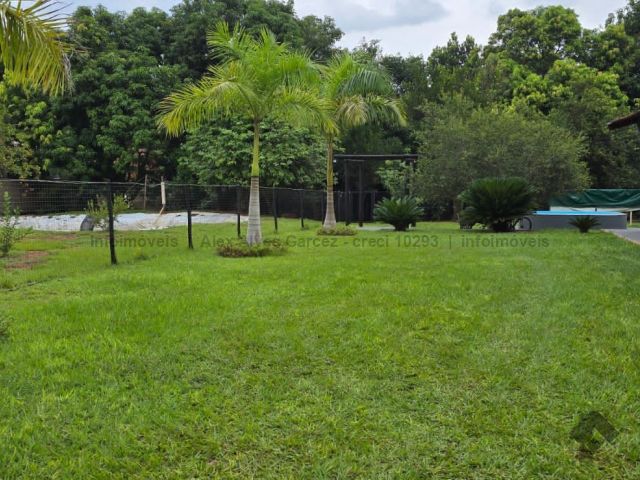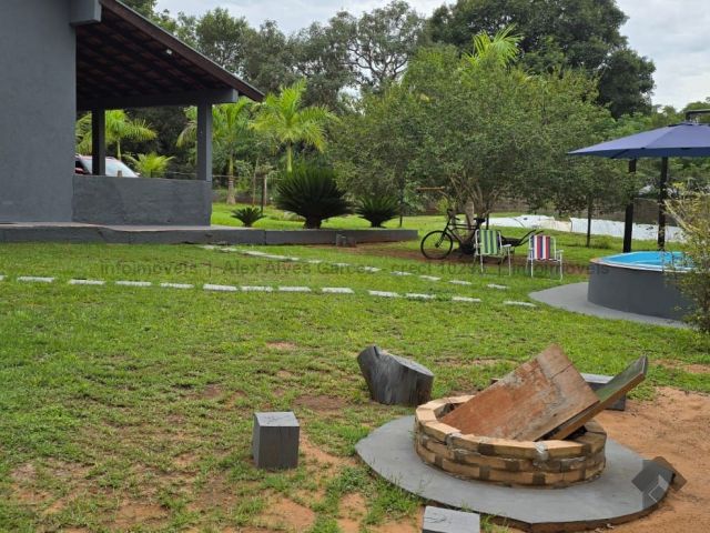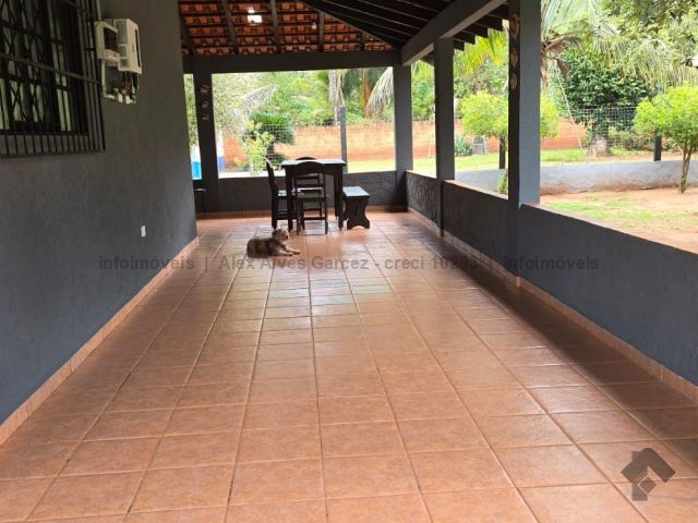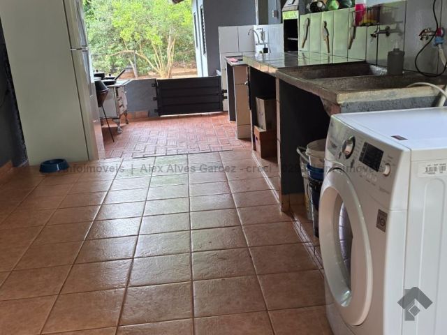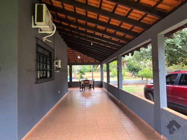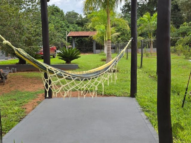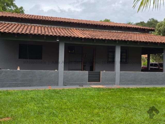 Excelente casa, área construída de aproximadamente 196 m², com quatro quartos, todos com ar condicionado e ventilador de teto, suíte com televisão nova, dois banheiros, sala com ar condicionado e televisão de LED, internet via fibra, Wi-Fi, cozinha com geladeira e freezer frost-free, fogão quatro bocas, micro-ondas e construção anexa de aproximadamente 24 m², uma peça de depósito e banheiro. Energia fotovoltaica, todas as peças forradas. Varanda ao redor da casa em formato de U, mesa e cadeiras de madeira, varanda com churrasqueira e fogão a lenha novo, máquina de lavar roupa LG frontal. Dois tanques para peixes, toda cercada, mata nativa, bomba d'água para encher os tanques e irrigação.