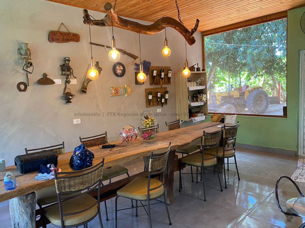 Chácara de 27 hectares que passa o rio cachoeirão. Tem deck para poder pescar no rio, tem mangueiro, casa de ordenha, chiqueiro, galinheiro, piquetes com separação de animais também. Pomar com coco, banana, limão, uva, pocã, laranja, cana, pitaya, maga, limão siciliano, amora, goiaba, Líchia, acerola, temoia, pinha, Gueroba, pequi. Roça com 5 fios de arame e tela, produzindo mandioca, limão, melancia, banana, feijão e muito mais. também pequena área com plantação de cana-de-açúcar. A sede principal com 1 suíte, 2 quartos, banheiro feminino e masculino, sala de estar, sala de jantar e cozinha integradas, ideal para receber amigos e familiares, toda com design rústico, cozinha com ilha, todo espaço cercado com tela de proteção contra mosquito, e visão para a área externa.