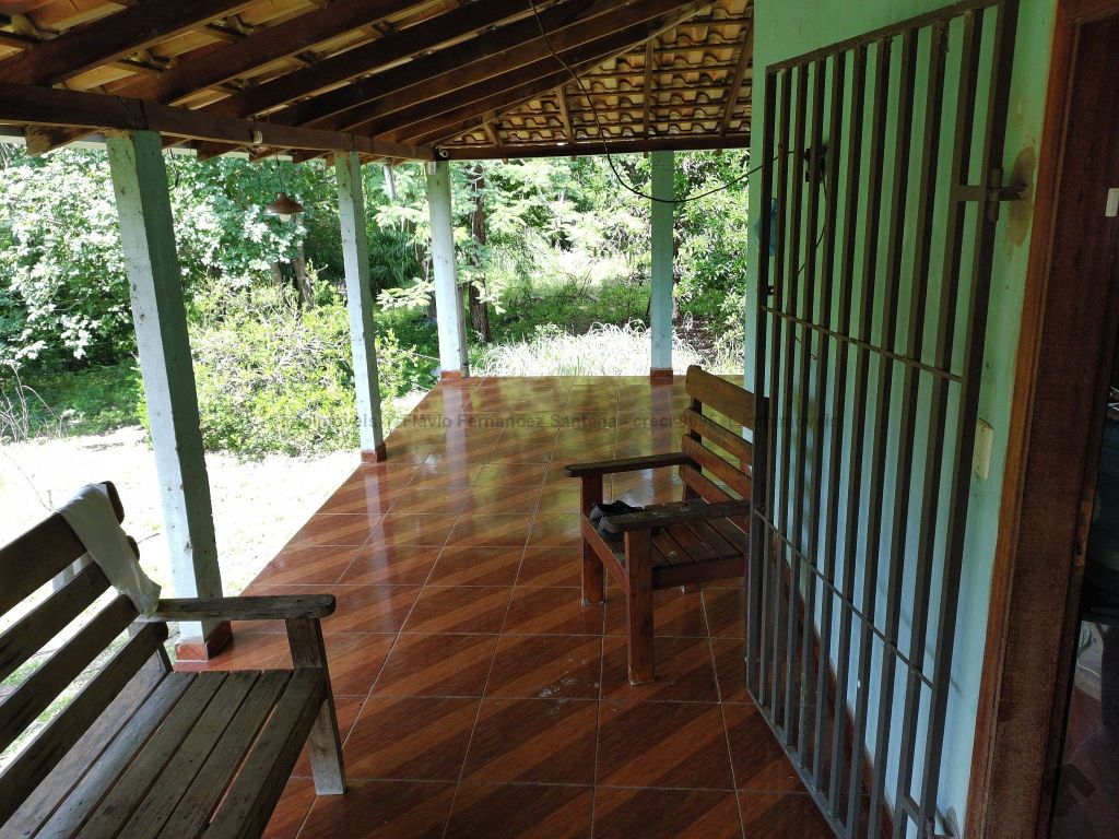 Chácara com 2 hectares, contendo casa com 2 quartos, sendo 1 suíte, quartos de 6x4m com laje, varanda, cozinha, fogão a lenha, churrasqueira e pomar.