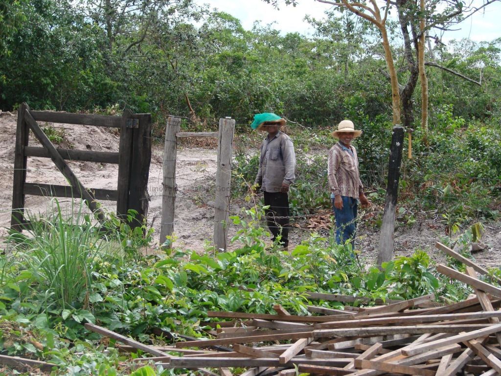 A fazenda está sem formar, aptidão pecuária, terra arenosa sem pedra, topografia plana, leve ondulação perto da água, e duas nascentes. Falta concluir o georreferenciamento.
