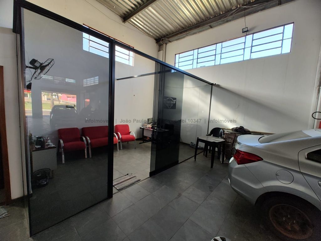 Oportunidade para empresas e distribuidores. Pavimento superior com calçada, plano e frente para a avenida Dr. Gunter Hans. Salão amplo com 2 portas metálicas, 1 banheiro, 1 despensa e 1 sala para escritório delimitada por vidros fumê. Acesso lateral em declive (rampa) para parte de baixo do imóvel, designado para entrada e saída de veículos. Pavimento inferior, com saída em portão de ferro de correr com face frontal para a rua Carlos Drummond de Andrade, com acesso para oficina e funilaria coberta para até 6 veículos, banheiro, despensa, depósito e área de descanso com churrasqueira e pia segregada. Canil para cães de guarda do local.