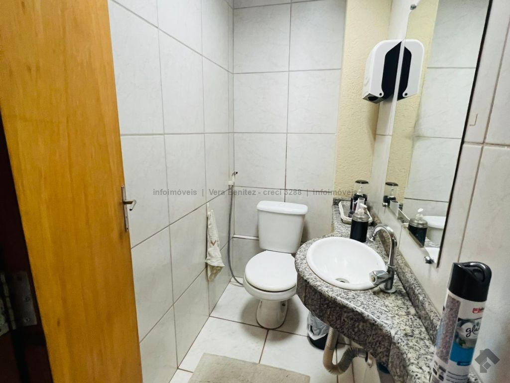 Prédio comercial com três banheiros, possibilidade para várias salas, elevador, mini copa, pé direito de 7 metros, estacionamento, 255 m² no térreo e 250 m² no superior.