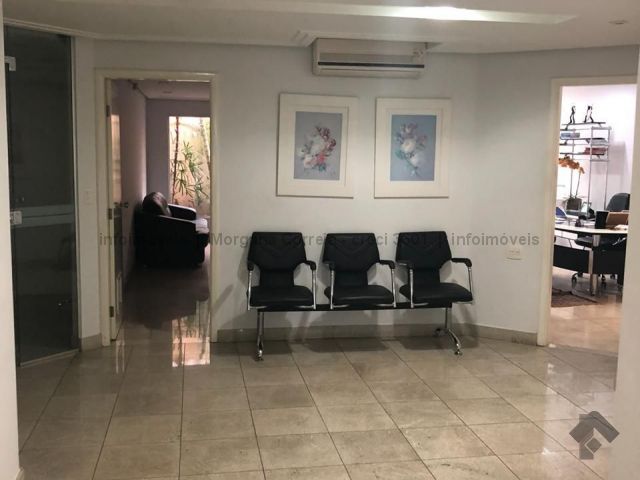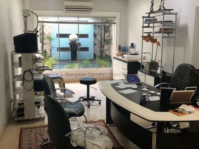 Piso térreo possui recepção, sala de espera, WC social, 01 sala com WC, 04 salas. Piso superior possui 01 WC social, recepção, 01 sala com WC, 04 salas. Possui subsolo para arquivo.