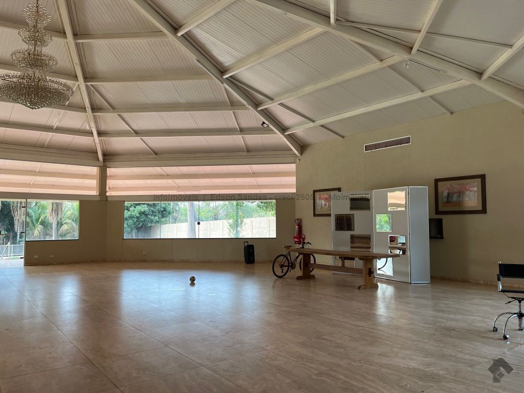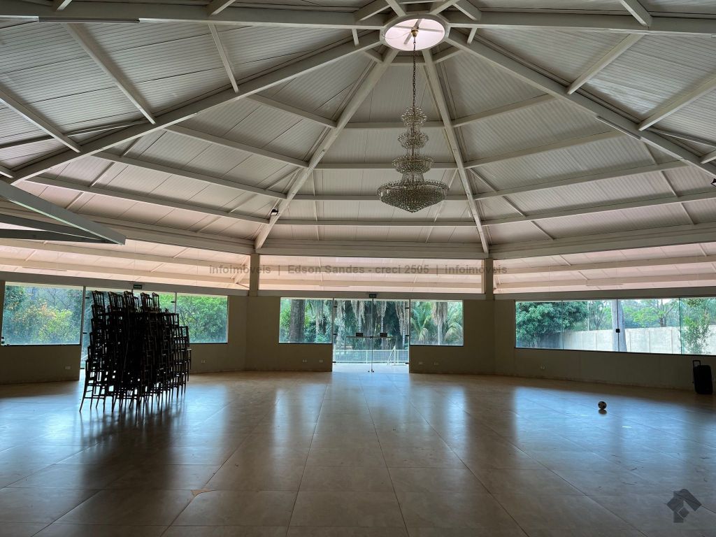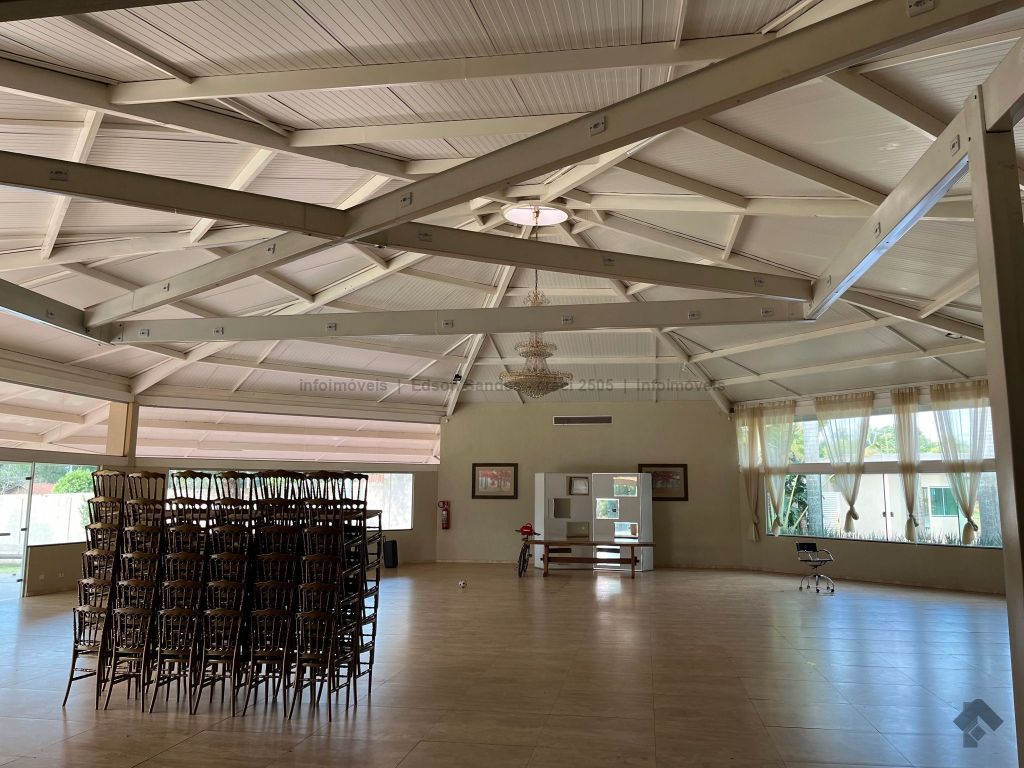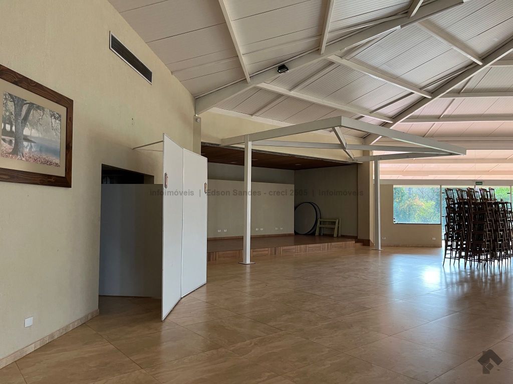 Frente para a rodovia com amplo salão de 700m² com pé direito de 7m, todo avarandado, com piso de porcelanato e pintura de primeira qualidade, ótima infraestrutura de cozinha e instalação de fogões industriais e botijões grandes de gás, banheiros em alto padrão de porcelanato, pintura, gesso e espelhos, recepção de belo acabamento e varanda na entrada para desembarque.