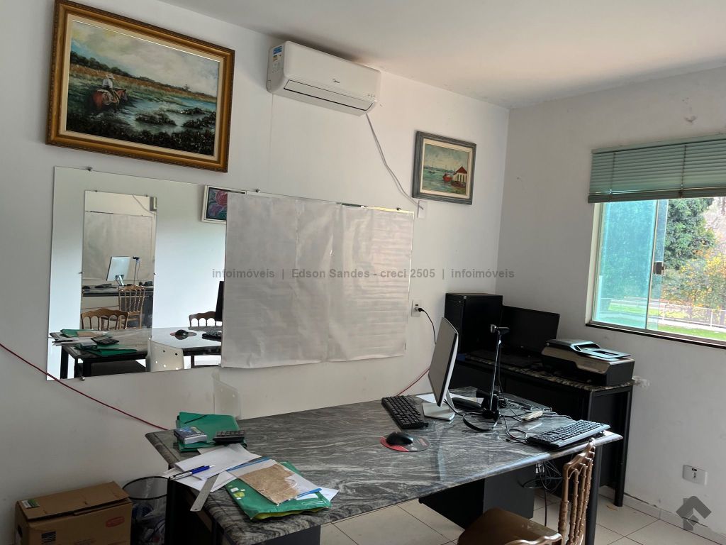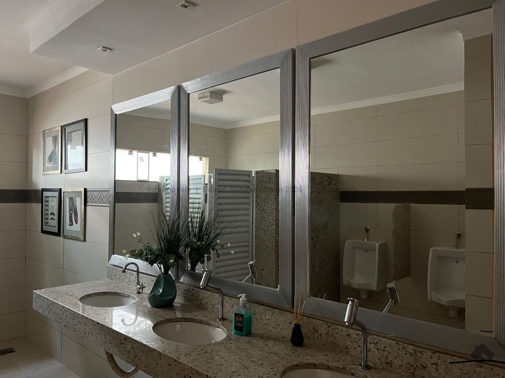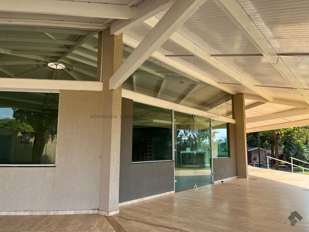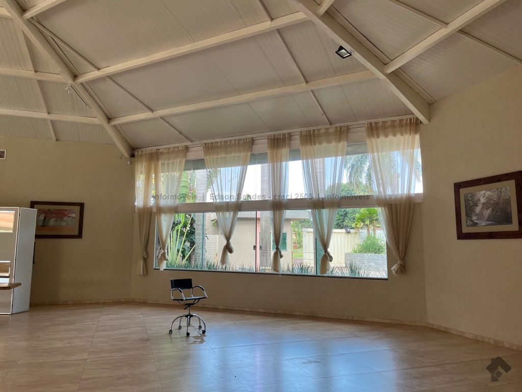 Frente para a rodovia com amplo salão de 700m² com pé direito de 7m, todo avarandado, com piso de porcelanato e pintura de primeira qualidade, ótima infraestrutura de cozinha e instalação de fogões industriais e botijões grandes de gás, banheiros em alto padrão de porcelanato, pintura, gesso e espelhos, recepção de belo acabamento e varanda na entrada para desembarque.