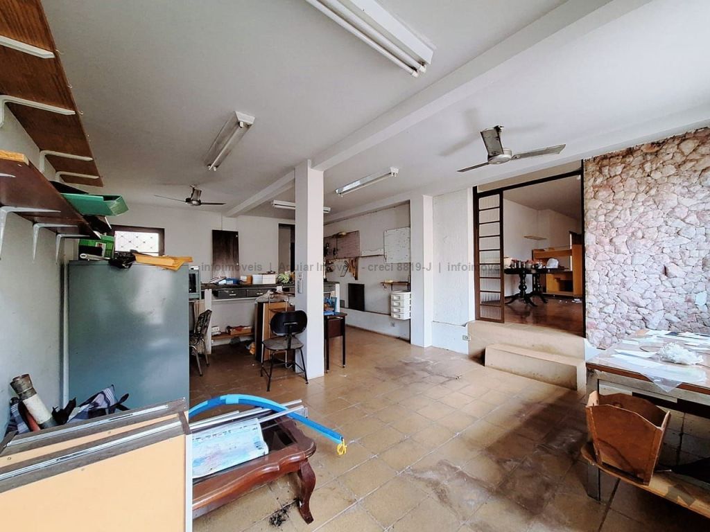 Recepção, sala de espera, escritório com banheiro, sala de reunião, cozinha grande com despensa, duas salas com banheiro. No fundo do imóvel, mais duas salas com banheiro, área de serviço, três vagas de garagem cobertas. O imóvel é todo em laje, todas as paredes são duplas, a laje do escritório é de piso e há possibilidade de até seis vagas.