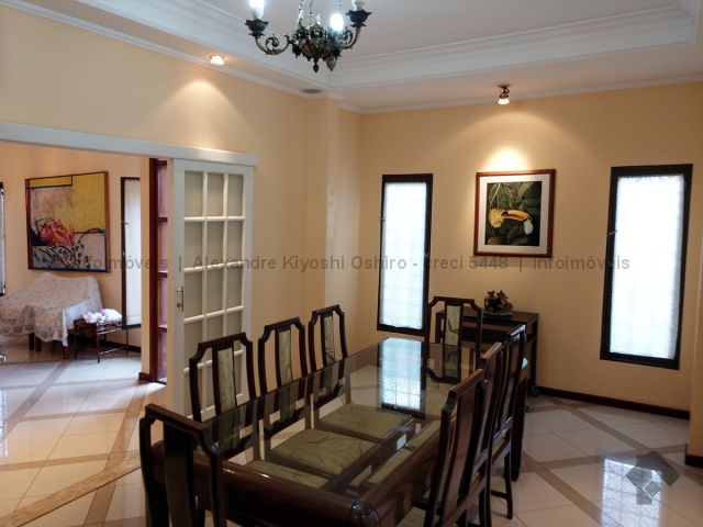 Piso térreo: 03 salas (estar, jantar, e TV), 01 banheiro social, 01 copa, 01 cozinha, 01 área de serviço, 01 despensa, 01 área para churrasqueira, 01 quarto de empregada e 01 banheiro de empregada. Piso superior: 03 quartos com armários embutidos, 01 suíte master com armário embutido.