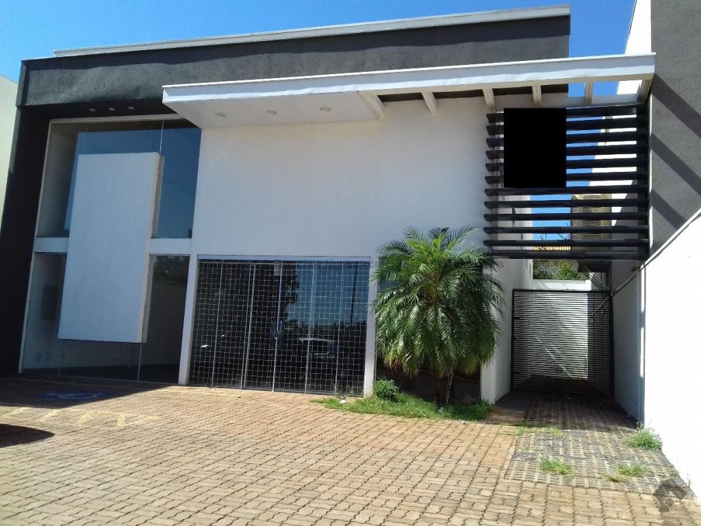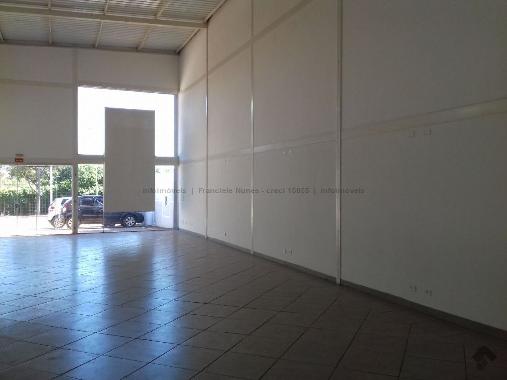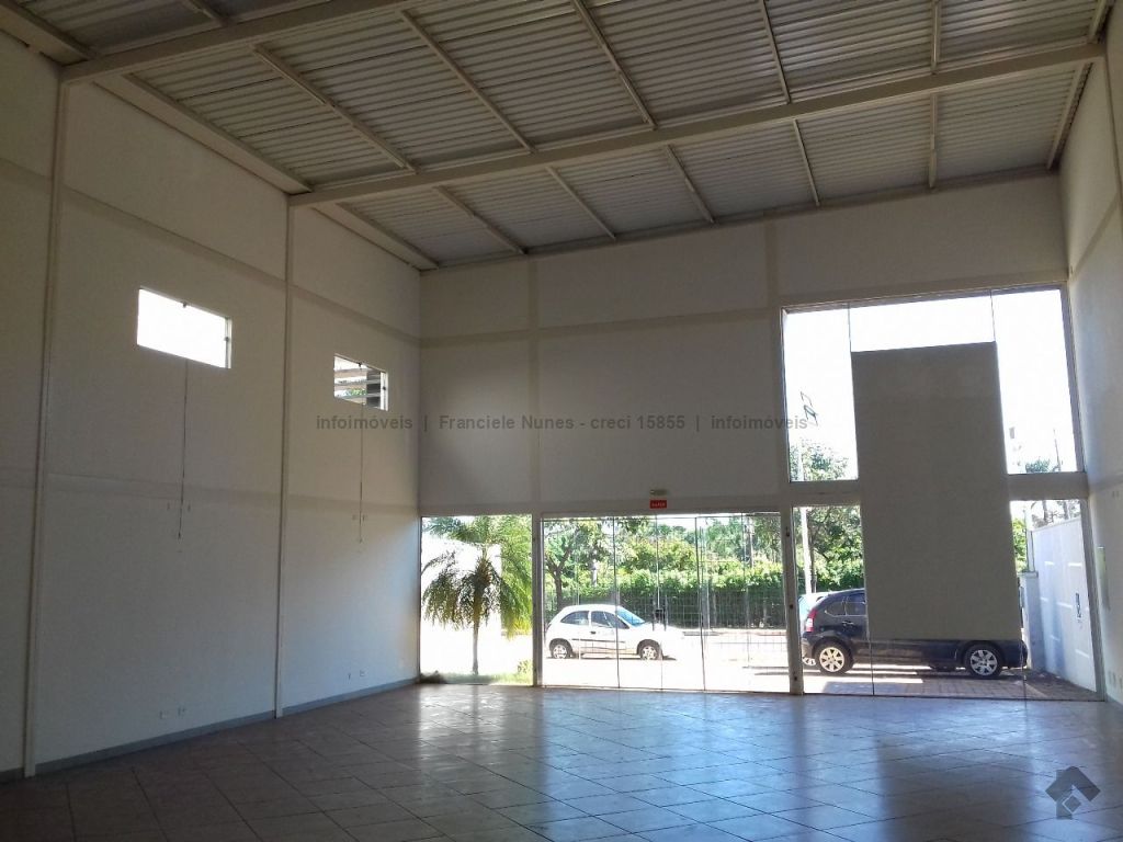 Salão comercial contendo um salão amplo, área administrativa, escritório, dois banheiros, área de serviço e estacionamento.