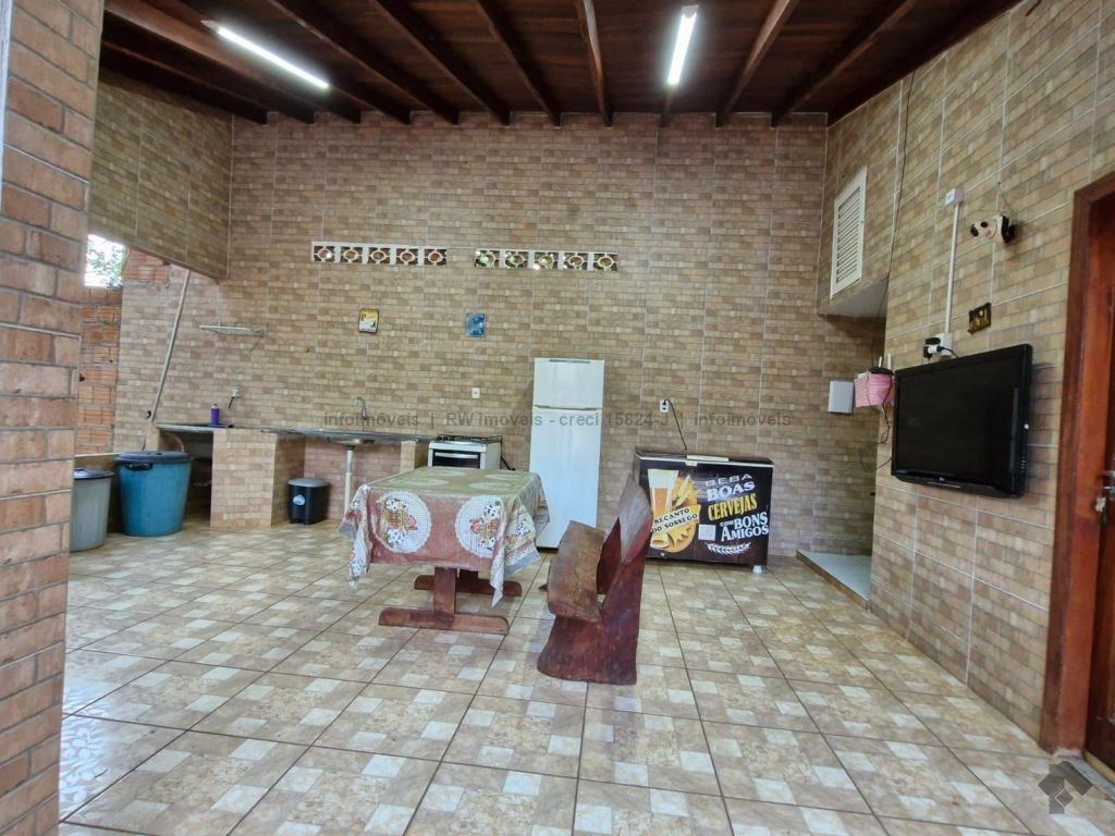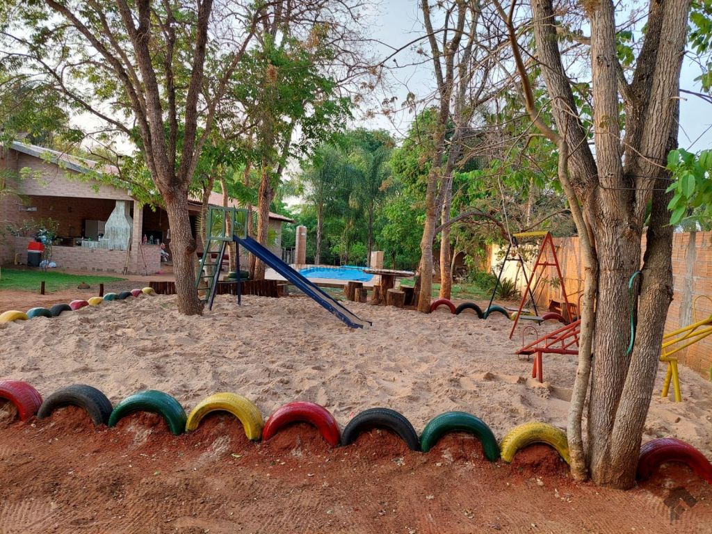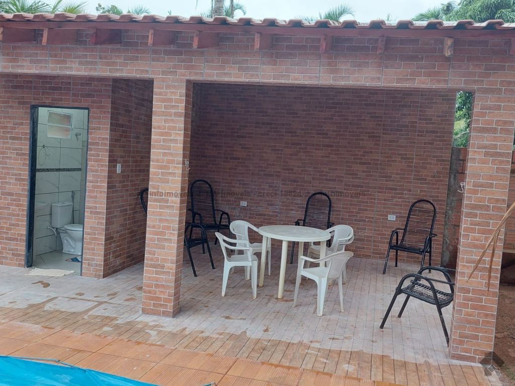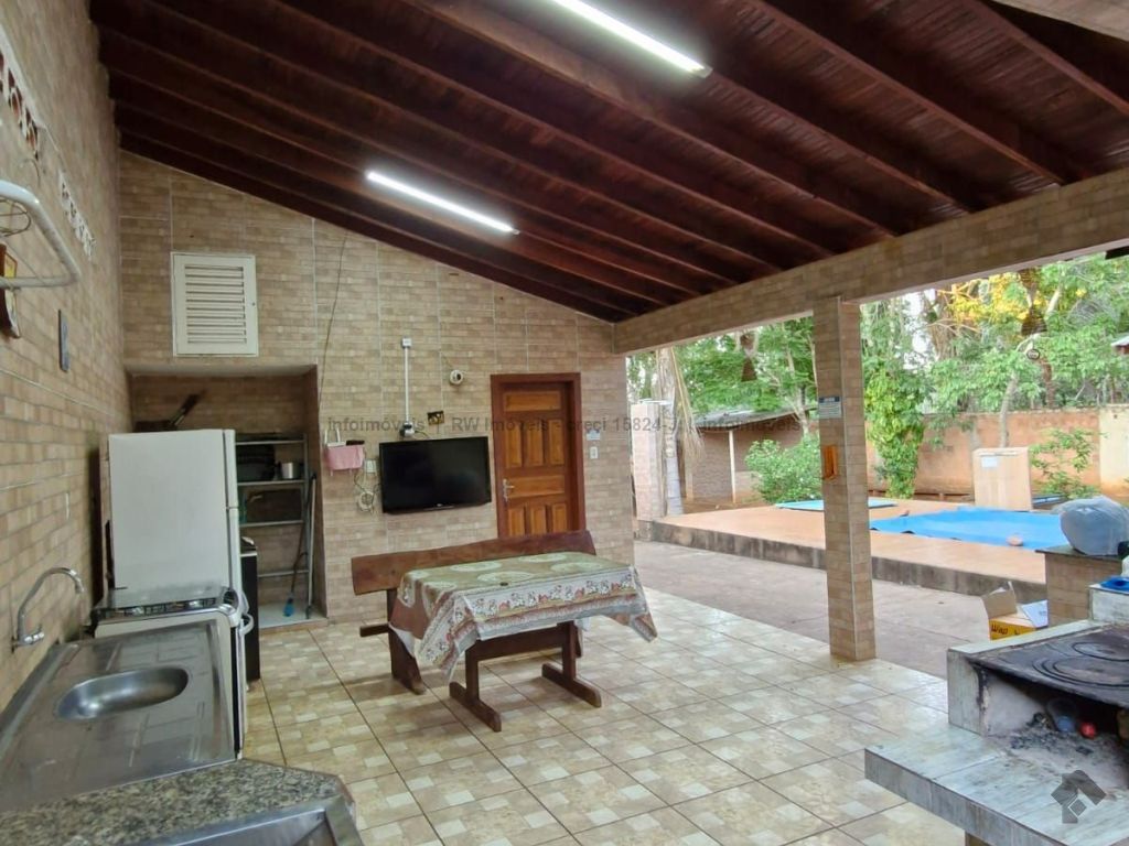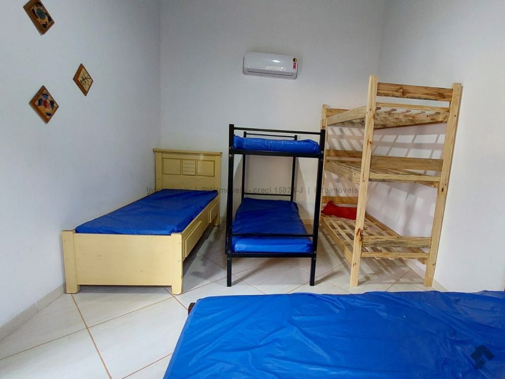 1 suíte: 1 cama de casal com colchão, ar condicionado split e WC. 1º quarto com 2 camas de casal, 1 cama de solteiro, 1 beliche, todos com colchões e 1 ventilador de teto. 2º quarto com 1 cama king size de casal, 1 beliche, 1 treliche e 1 cama de solteiro, todos com colchões, ventilador de teto e ar condicionado split 12 mil BTU. Área gourmet com churrasqueira, fogão à lenha e gás, freezer e geladeira. Quarto de despensa com ferramentas de manutenção das piscinas e do terreno. Redário: espaço de lazer com disponibilidade para 2 redes e 1 WC.