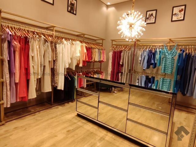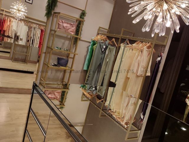 Loja de roupas para entrar e trabalhar, toda montada e com estoque. Piso trocado, acabamento em gesso, permanece no imóvel toda a marcenaria já instalada, espelhos, vidro preto laqueado, porta de correr no interior da loja, vitrine com iluminação em trilho, porta com puxador, lavabo montado e requintado, sala de escritório com armários, jogo de cadeiras com mesa de centro, 200 cabides simples, 100 cabides com presilhas, 2 cabides corpo, aparador, balcão espelhado, 3 manequins, arara, ares-condicionados (central da loja - cassete 48.000 BTUs, escritório - 12.000 BTUs e provador - 12.000 BTUs), estoque completo, sistema, CNPJ ativo com praça aberta em algumas lojas, lista de contatos de fornecedores.