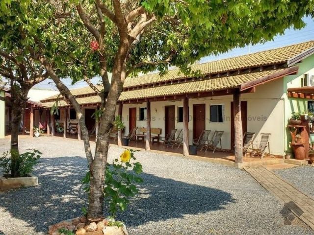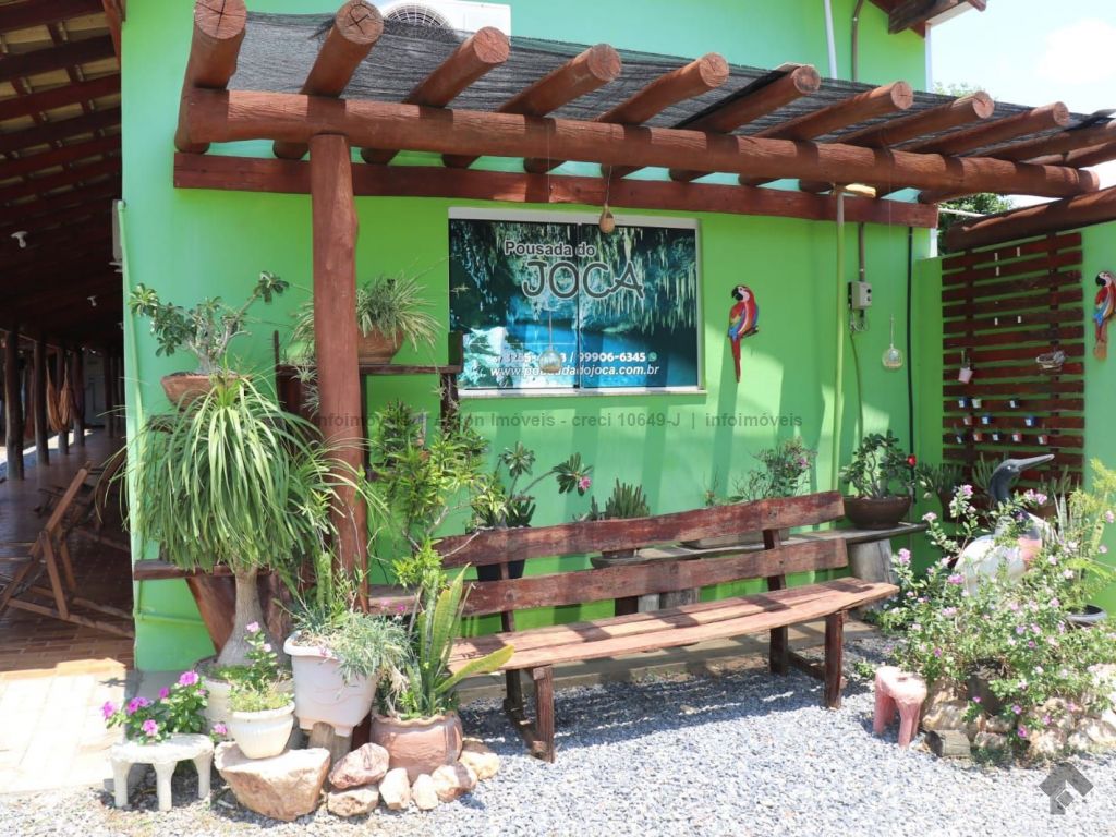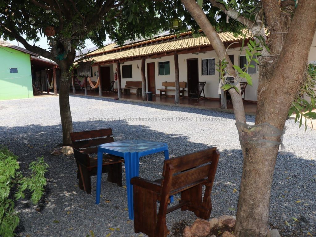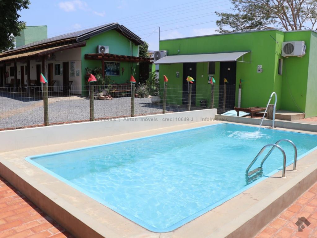 Sendo 17 apartamentos completos; com banheiro, camas, ar condicionado, tv, frigobar, wifi, varanda de aroeira, (placas solares pagando somente a taxa mínima) com espaço para ampliar, amplo estacionamento, interno capacidade de até 30 carros, piscina adulta com banheiros, recepção, cozinha, sala de café, lavanderia, despensa, e mais: porteira fechada com toda mobília, (com todos os móveis da pousada pronta para trabalhar).