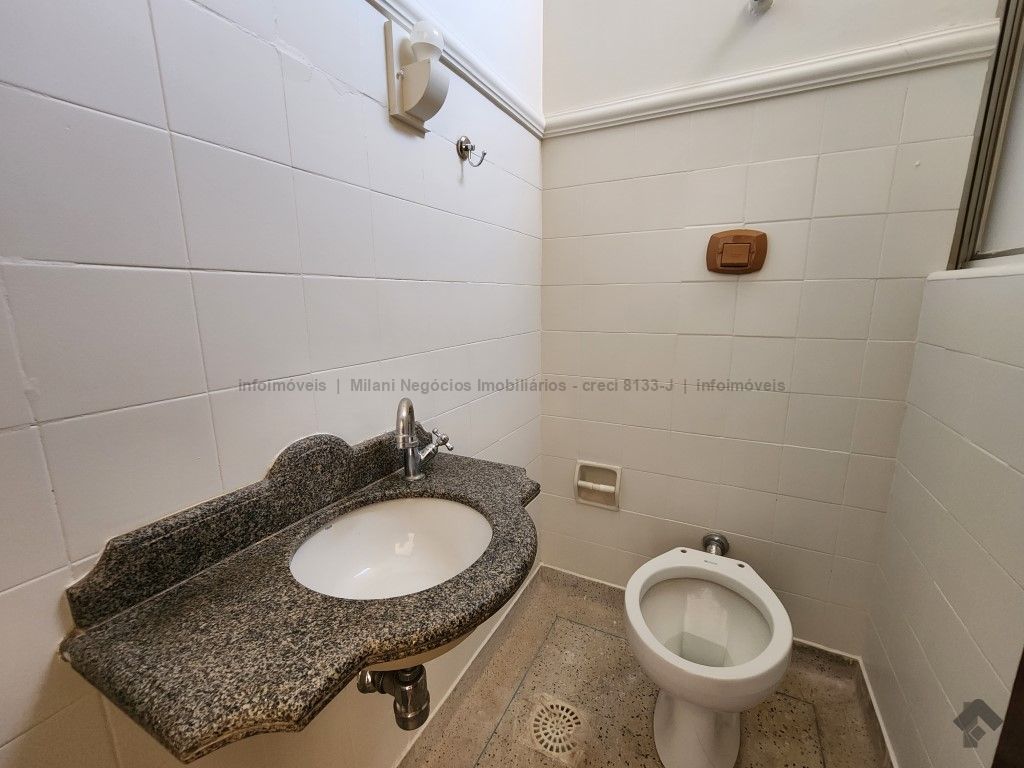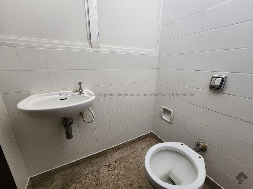 Sala ampla localizada no 1° andar, recepção, lavabo, copa/cozinha e wc, 01 sala ampla de reunião, 03 salas sendo uma com wc, 02 vagas de garagem coberta.