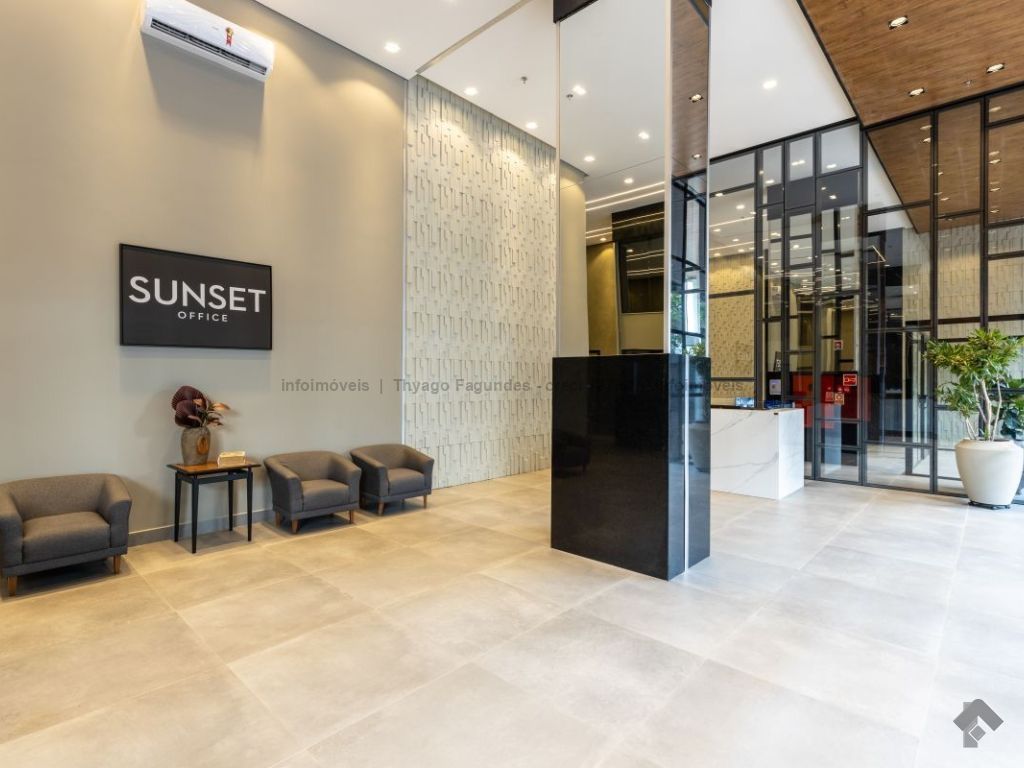Sala comercial, área privativa: 63,94 m², área de uso comum: 67,64 m², área de garagem: 25m², área total: 156,59 m², mezanino, banheiro, copa. Administramos para você. Sobre o Sunset Residence Suíte & Office, empreendimento de uso misto com andares comerciais e andares residenciais, Sunset Stúdio, destinado para investidor que busca segurança e boa rentabilidade, Sunset comercial, voltado para profissionais liberais e escritórios, área de lazer na cobertura para unidades residenciais.