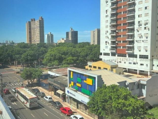 Vista para a rua Treze de Maio. Sala ampla, com copa, ar-condicionado split e WC social.