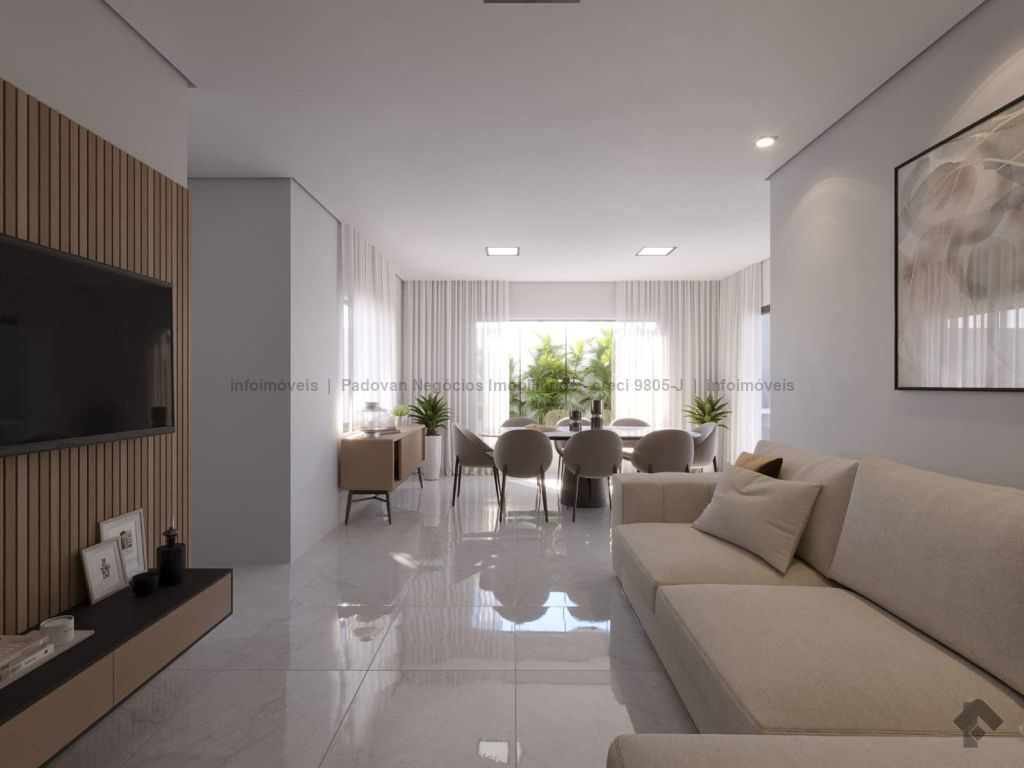 Arquitetura exclusiva com todo o conforto e segurança que você e sua família precisam. Projeto arquitetônico diferenciado. Ambientes aconchegantes e espaçosos. Forro de gesso rebaixado e iluminação em LED. Todos os cômodos com iluminação natural e janelas. Sala de estar com possibilidade de mesa de jantar. Cozinha espaçosa com saída para área de serviço. Suíte e quartos com espaço para cama e guarda-roupas. Área gourmet e piscina.