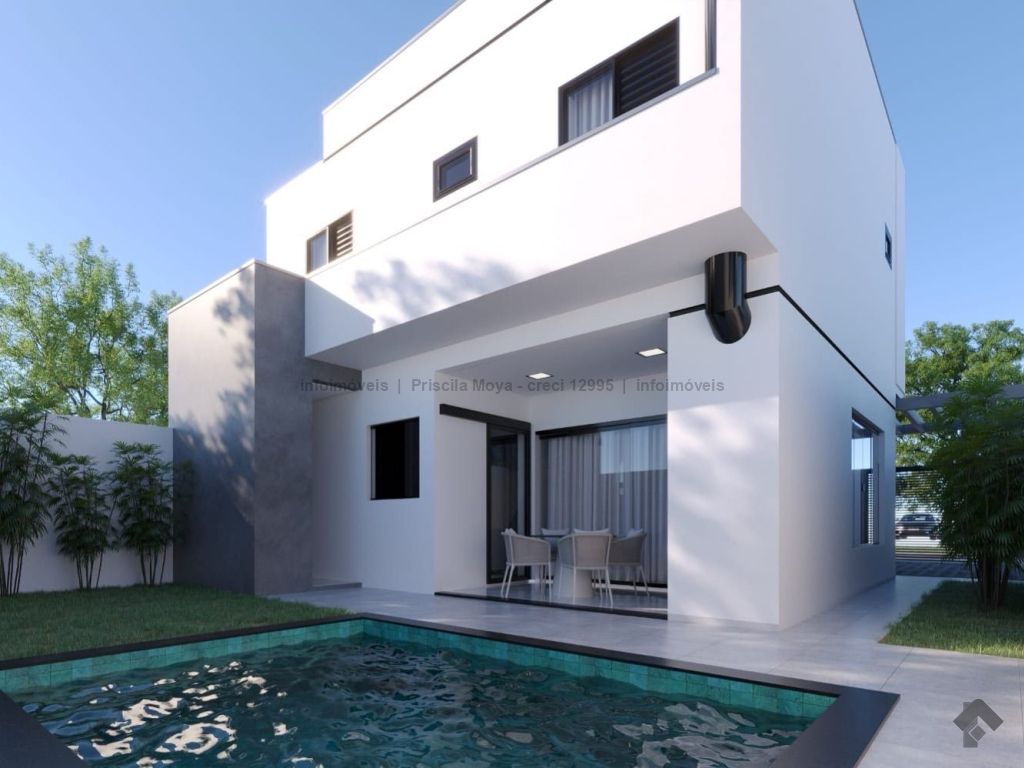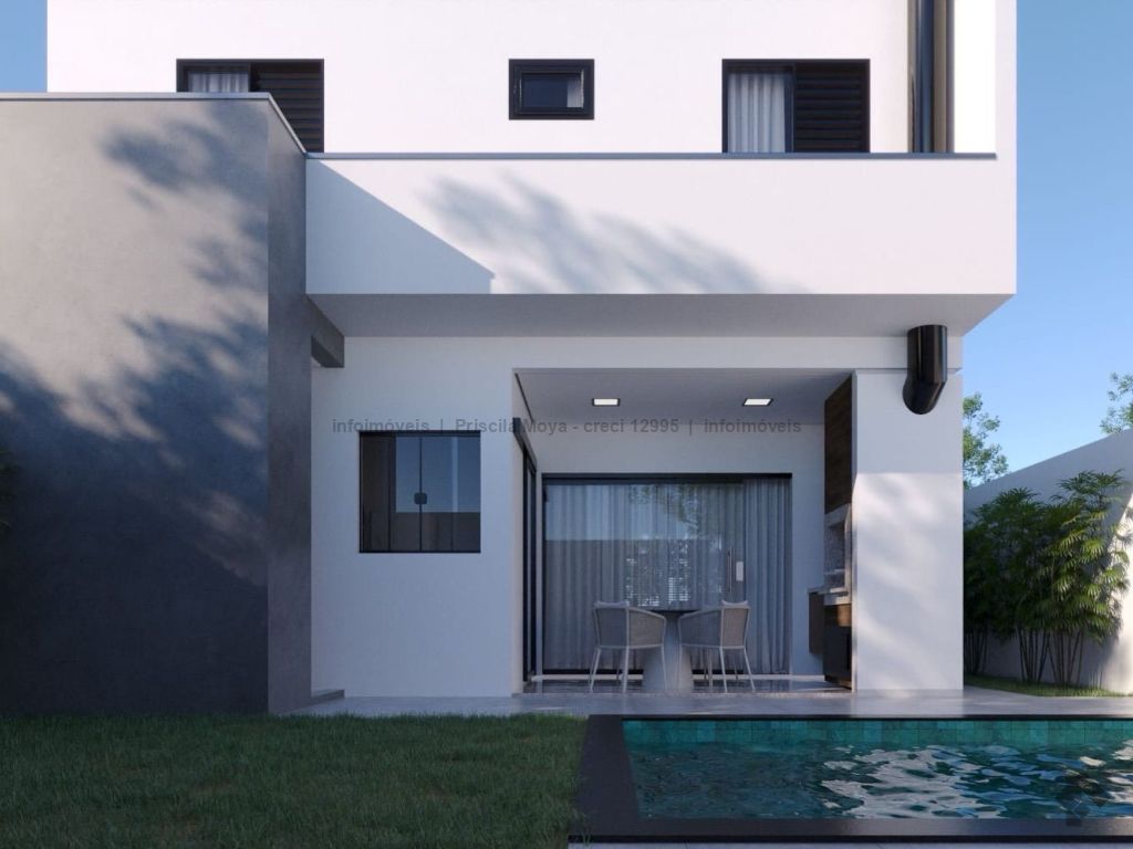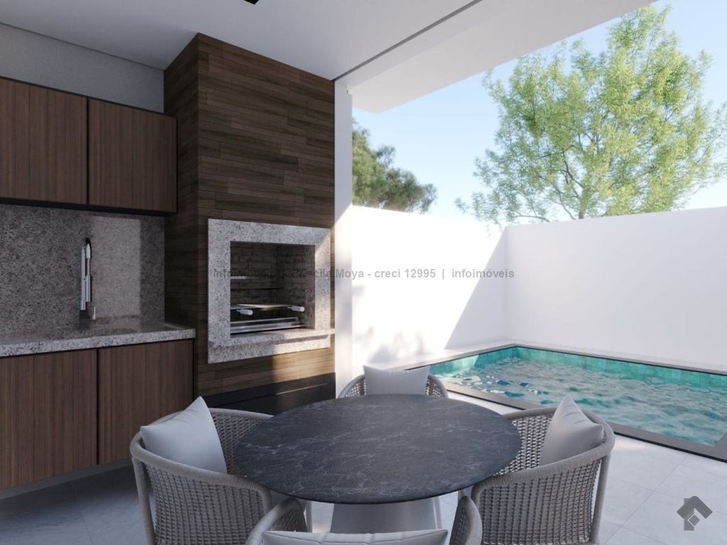 3 quartos (sendo 1 suíte), sala/cozinha e 1 banheiro social. Área total de 162 m². Área aproximada construída de 121,78 m². Sacada com terraço, piscina em vinil, área gourmet, sala de estar ampla, lavanderia coberta separada, acabamentos de alto padrão, forro de gesso acartonado, projeto luminotécnico rico em detalhes.