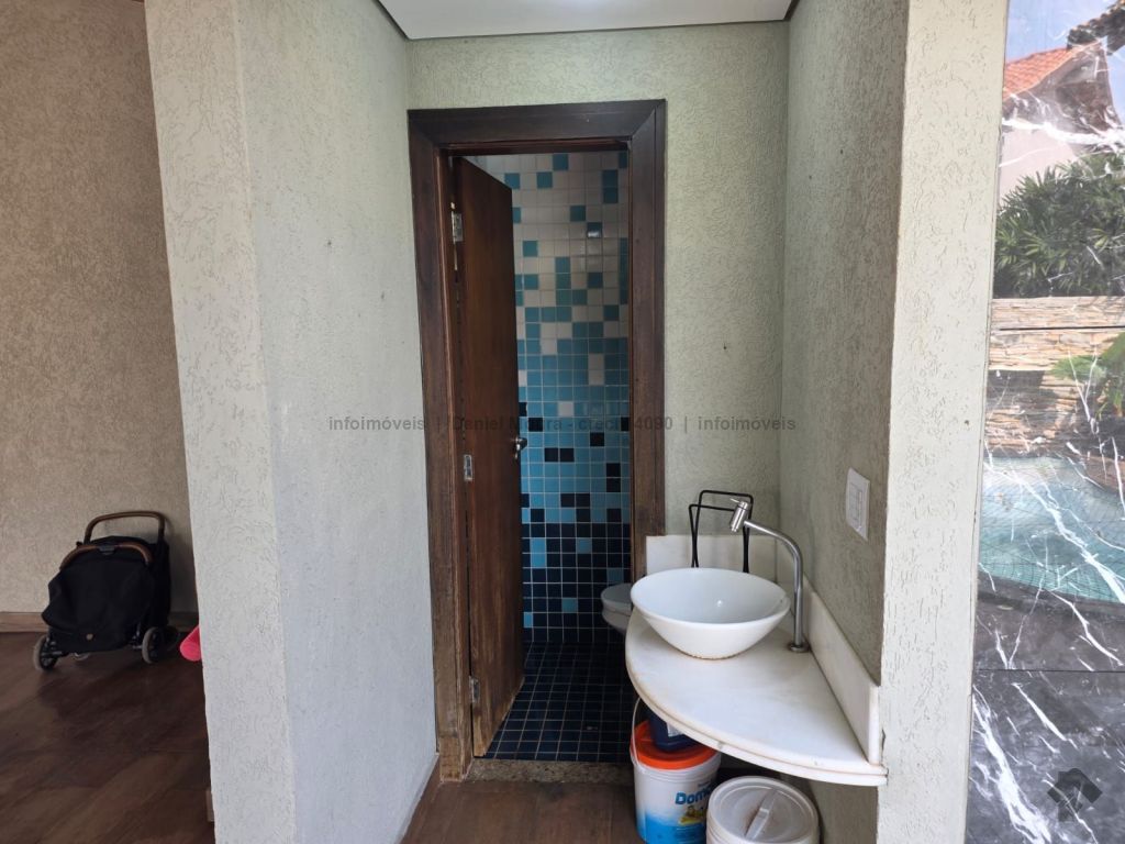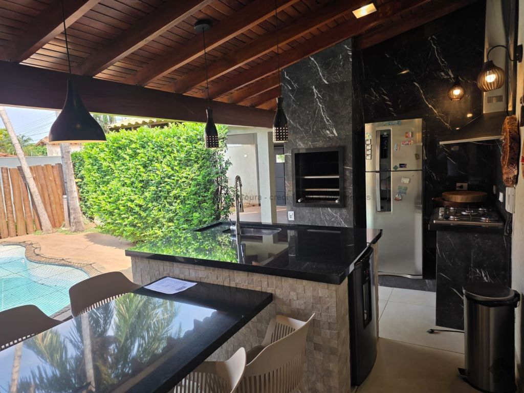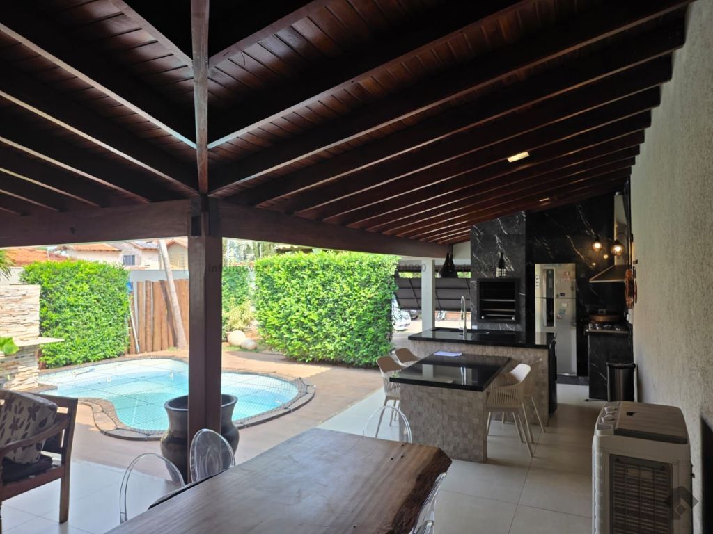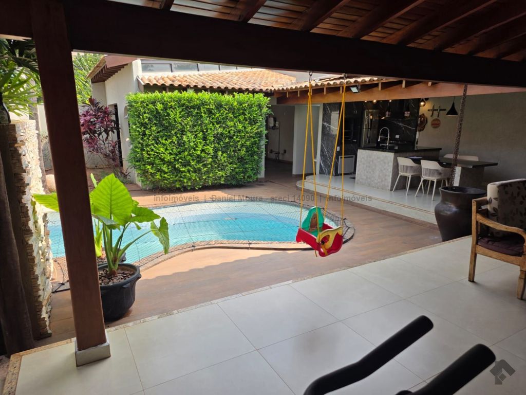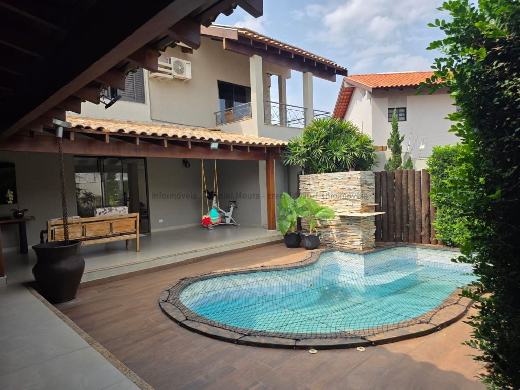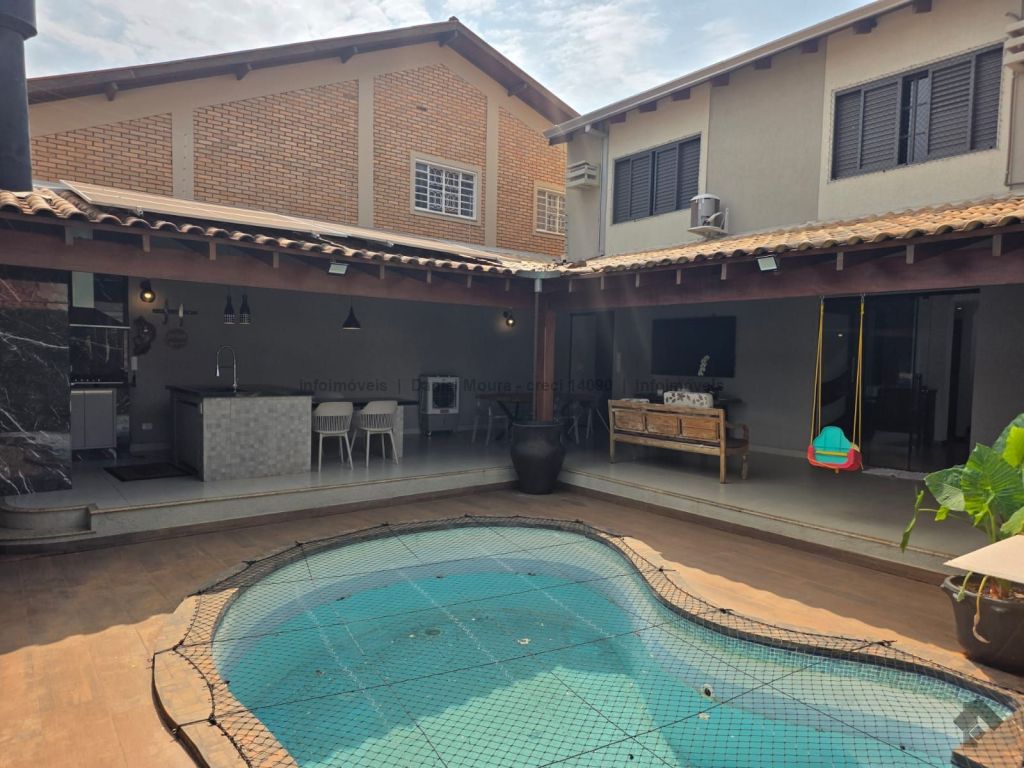 Um belo sobrado, servido de jardim paisagístico, magnífica área gourmet com banheiro de apoio, integrada à piscina, varanda e sala ampla de estar e outra de TV, cozinha interna independente, lavanderia e despensa integradas. No piso superior, conta com 1 suíte master com banheira e closet, 2 quartos com armário embutido, sendo 1 conversível para escritório.