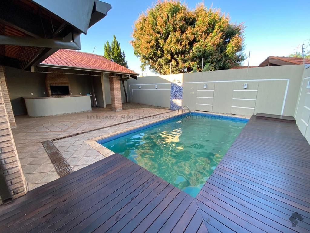 Sobrado com amplo terreno e bem localizado. Asfalto, esgoto e rede elétrica. Terreno mede 12x30m = 360m² e área construída de 300m². Sala de TV, sala de estar, cozinha planejada, 3 suítes com armários, varanda, aquecedor solar, sacada, área de serviço, sacada, despensa, interfone, lavanderia, portão elétrico, espaço gourmet com churrasqueira, piscina, lavabo, quarto empregada, 4 vagas de garagem.