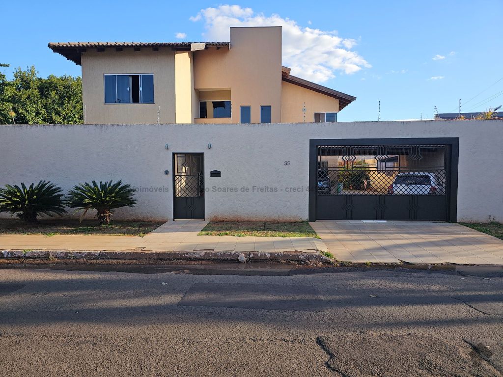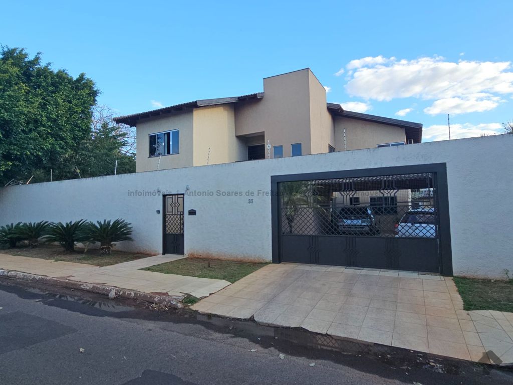 Lindo sobrado. Possui cerca elétrica, moldura, sanca e rebaixamento em gesso, projeto luminotécnico, jardim, paisagismo, escada com corrimão, sacada, garagem coberta para 2 carros e descoberta para 2 carros e portão de elevação com motor. Composto de 5 suítes. A master com closet enorme. 3 suítes com armários embutidos e 2 suítes sem a/e. 1 suíte com hidromassagem. Banheiros (das suítes, os sociais, lavabo e da lavanderia) são azulejados, espaçosos, com box e bancadas em mármore. Cozinha planejada, rica em armários embutidos, com ilha, bancada e pia em mármore, mesa de refeição rápida, coifa, cooktop e forno elétrico. Área gourmet com churrasqueira, armário embutidos, bancada em mármore e piscina.