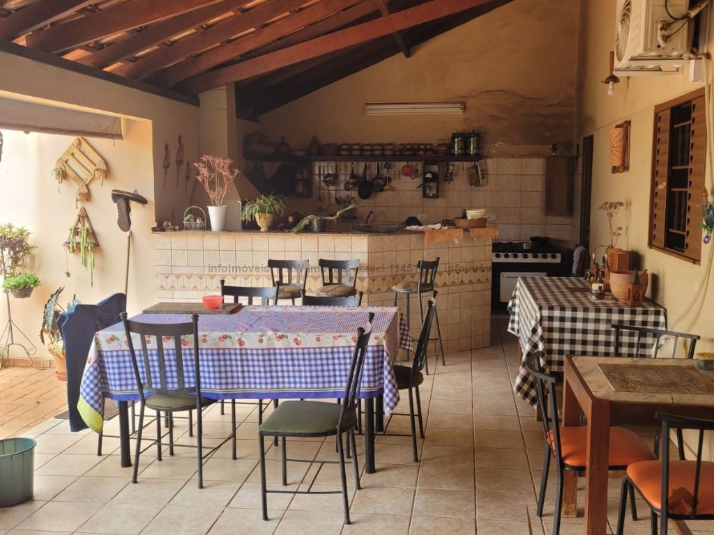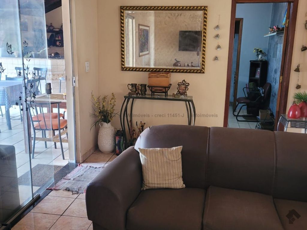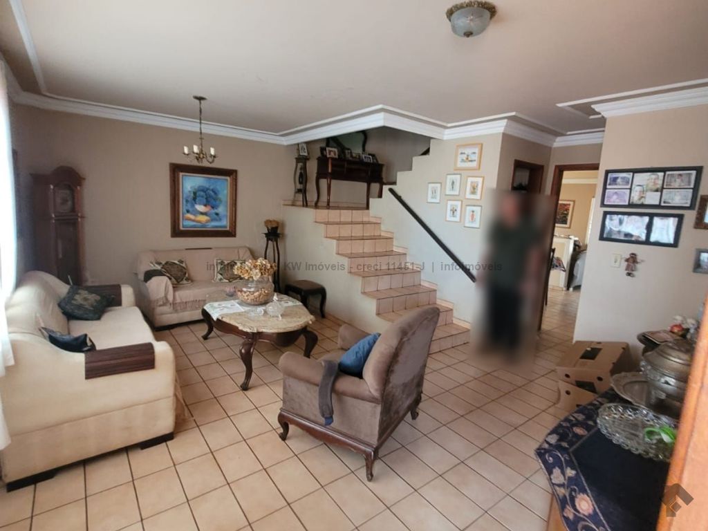 Pavimento superior: 1 suíte ampla com armários planejados, 2 quartos com armários embutidos, 2 banheiros sociais, 1 cômodo grande (ocupando toda a largura do terreno) com banheiro ideal para sala de jogos, academia ou home office. Pavimento térreo: garagem coberta para 2 carros, jardim frontal amplo, 2 entradas laterais de acesso à residência, sala de estar, sala de jantar e sala de TV, saleta com banheiro (pode ser usada como escritório ou quarto), copa/cozinha espaçosa com armários planejados, despensa, banheiro social e lavabo, área de serviço lateral, área externa/fundos, varandão coberto com 12 m de comprimento, churrasqueira e cozinha completa com balcão de serviço.