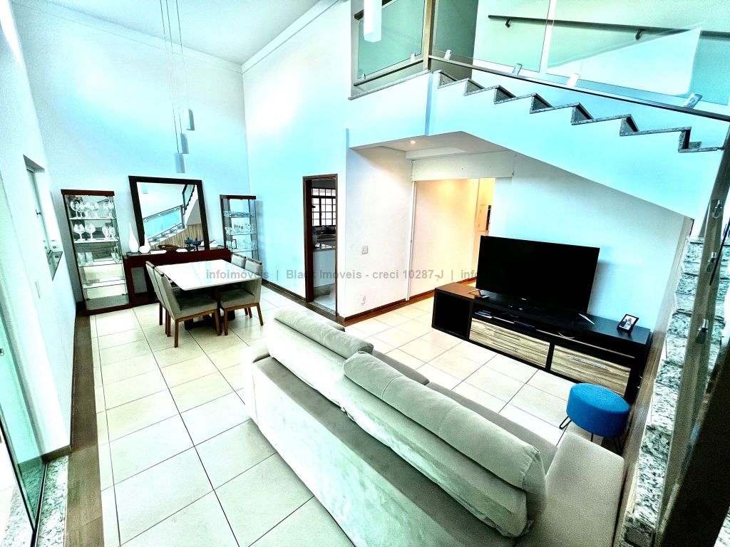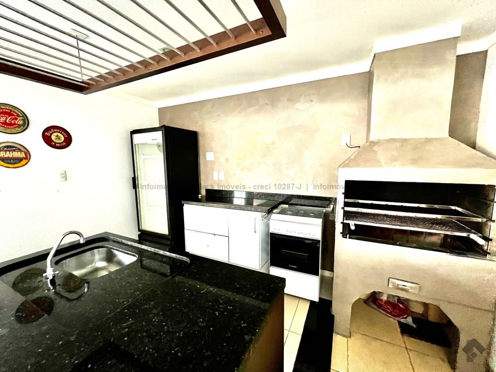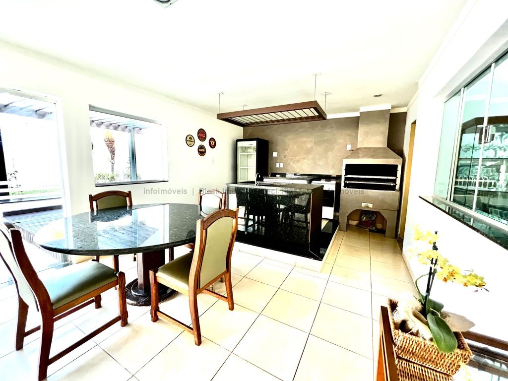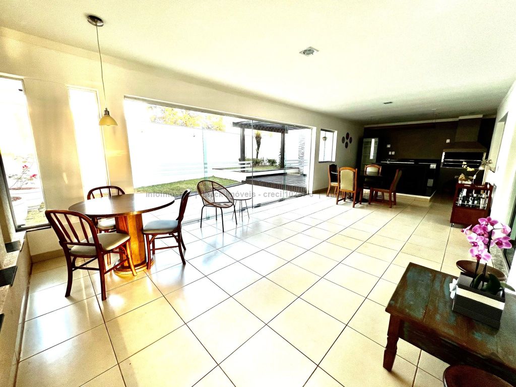 Pavimento térreo: 1 suíte com sala, 1 quarto, 1 sala para 2 ambientes, 1 sala de tv, 1 sala de jantar, cozinha, área de serviço, wc de serviço. Espaço gourmet com churrasqueira, ilha e wc. Lazer com gramado e preparação para piscina. Pavimento superior: 3 suítes sendo 1 com closet e 1 com closet e sacada.