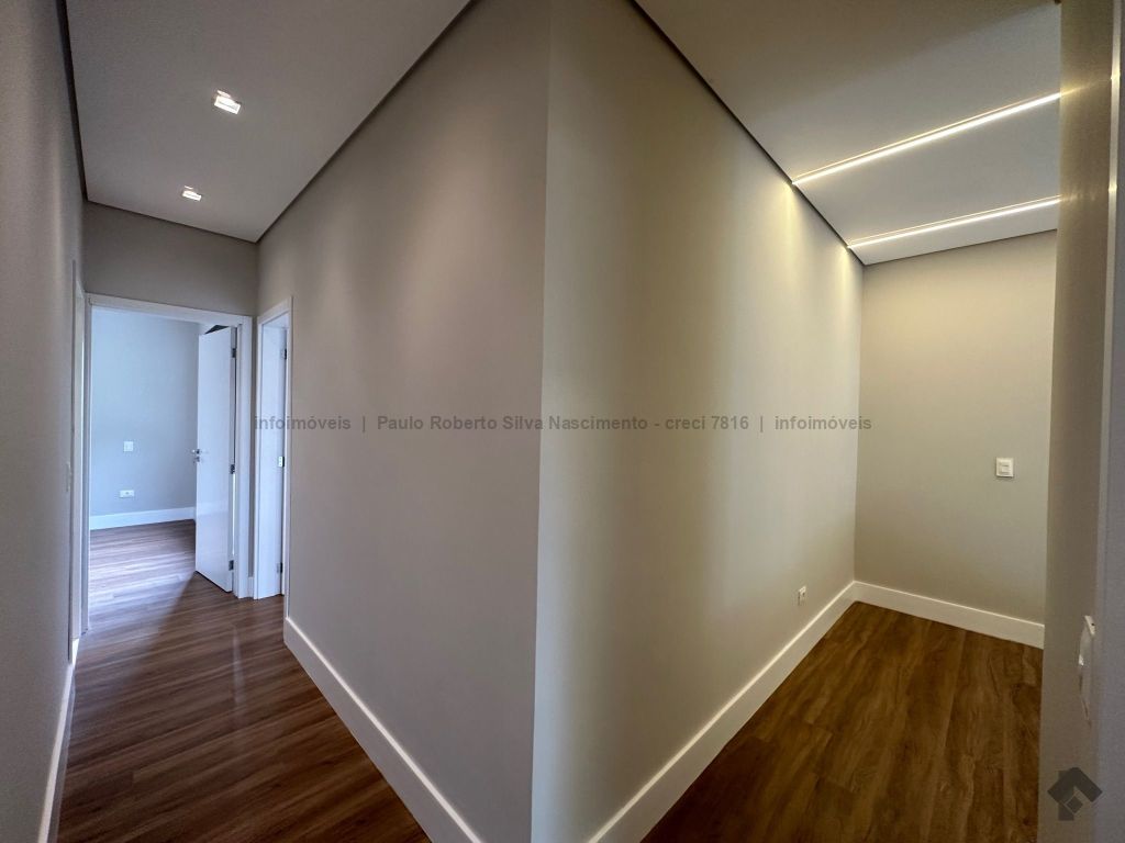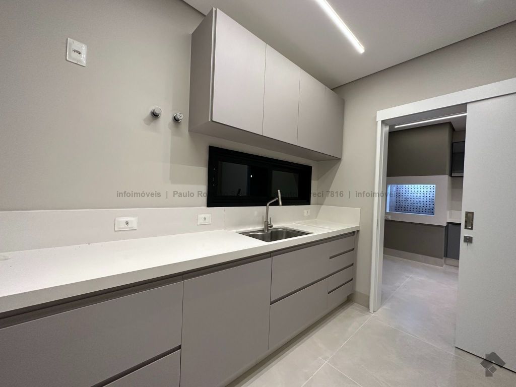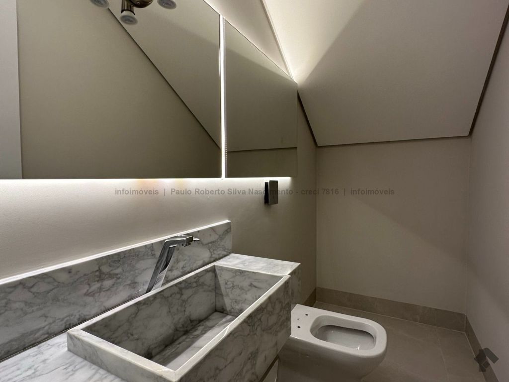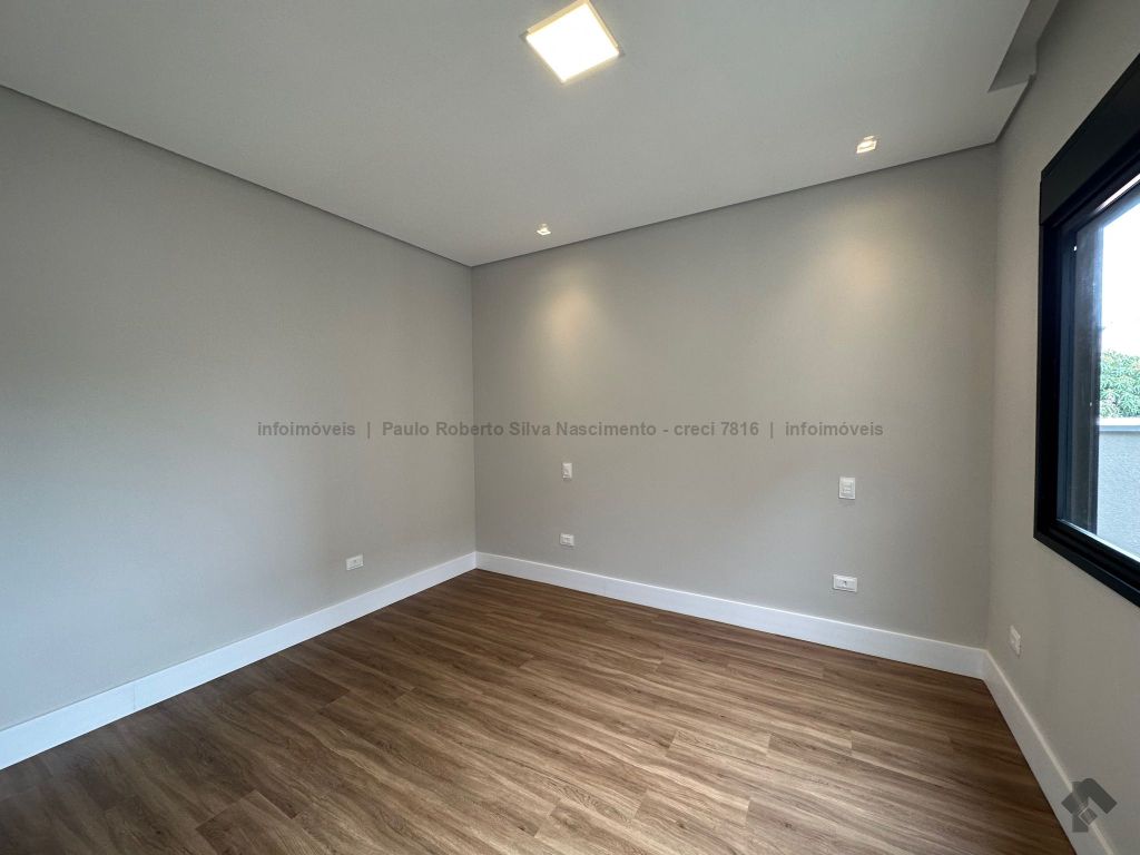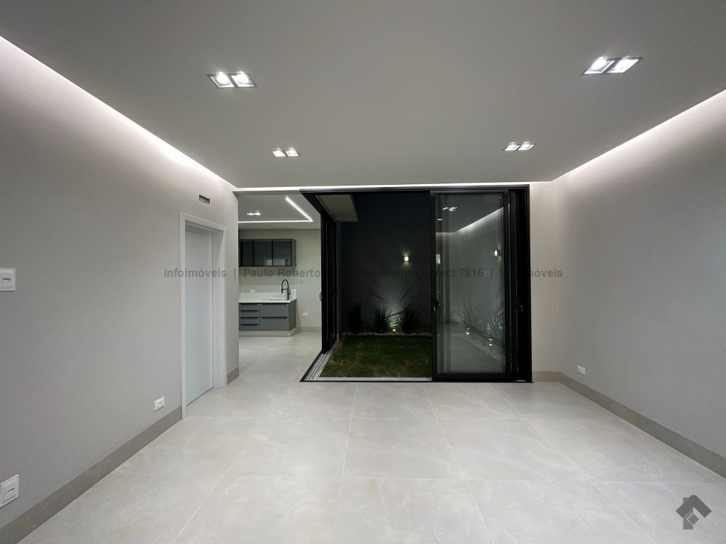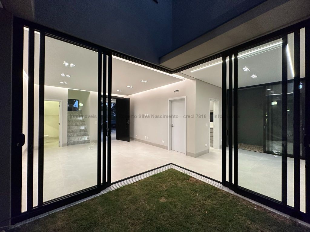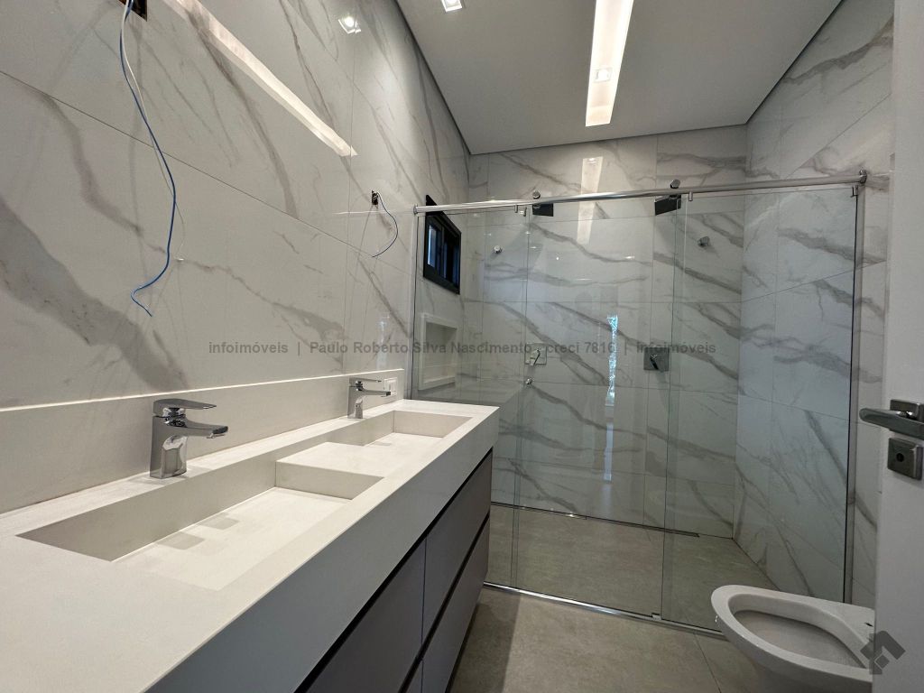 Piso térreo: com garagem ampla, sala, varanda gourmet com churrasqueira, lavabo, cozinha, lavanderia e quintal gramado. Piso superior: 01 suíte ampla (banheiro com cubas e duchas duplas) e sacada, 02 quartos amplos. Esquadrias em alumínio, persianas automatizadas, pisos grandes formatos 90x90m, sistema de água quente, com aquecedor instalado, banheiros com box e com conjuntos de louças marca deca, pontos para instalação de ares condicionados na sala, cozinha e suítes, armários embutidos na cozinha, área gourmet e banheiros, escada em mármore carrara.
