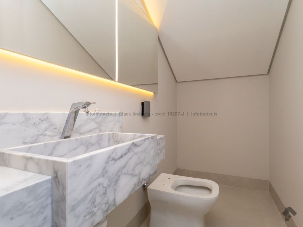 Sobrado com construção de primeiríssima qualidade, esquadrias em alumínio e automatizadas, sistema de água quente, preparação de ar-condicionado e planejados nos banheiros, cozinha e gourmet.