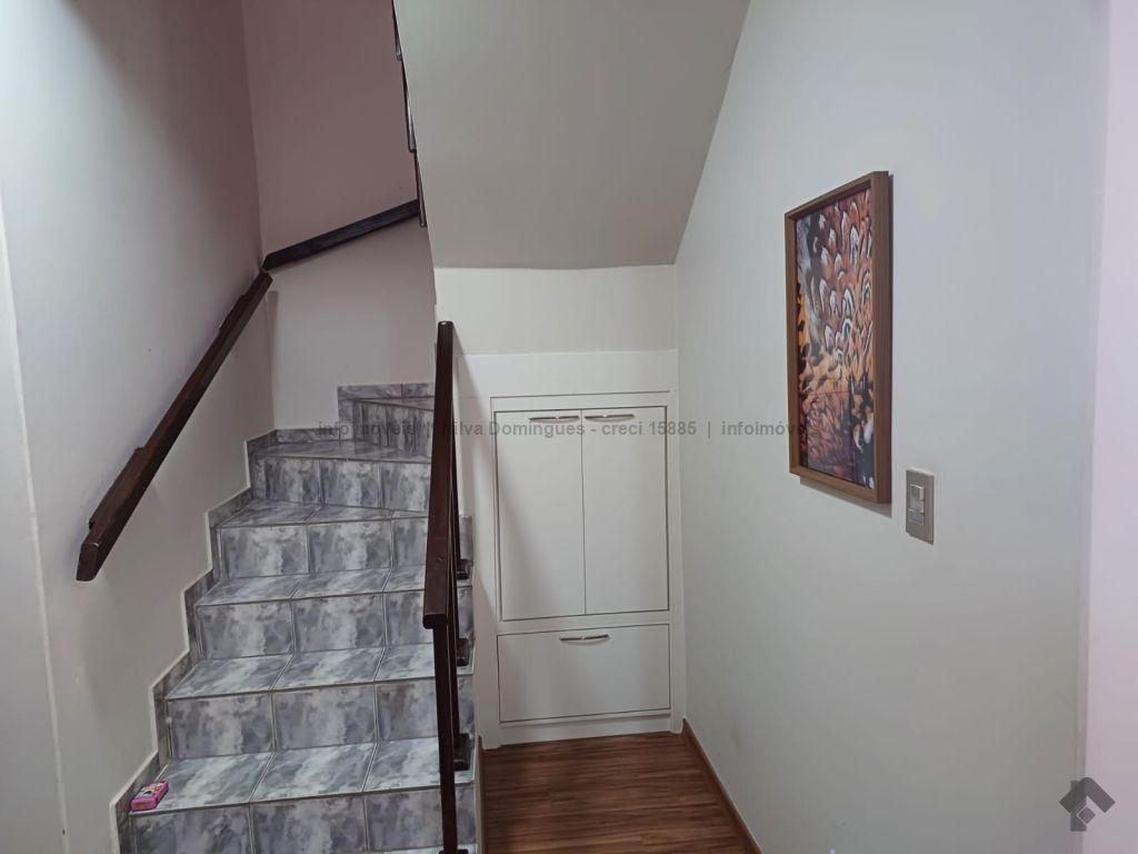Sobrado geminado com 1 suíte mais 2 quartos (1 com armário, outro com sacada), 2 banheiros sociais, lavabo, sala para 2 ambientes, cozinha com armários, lavanderia, área gourmet e garagem coberta para 2 carros.