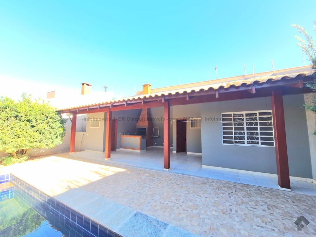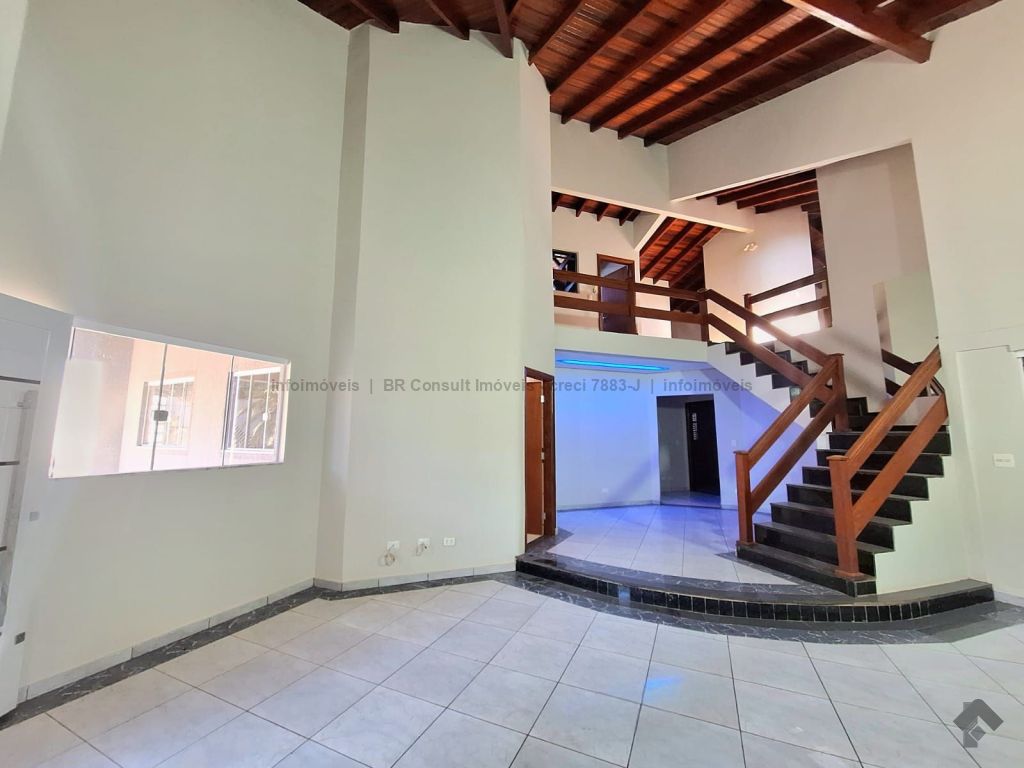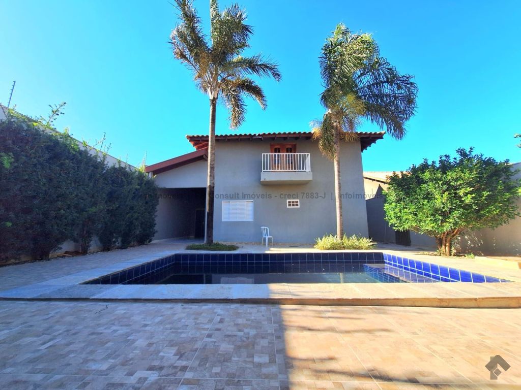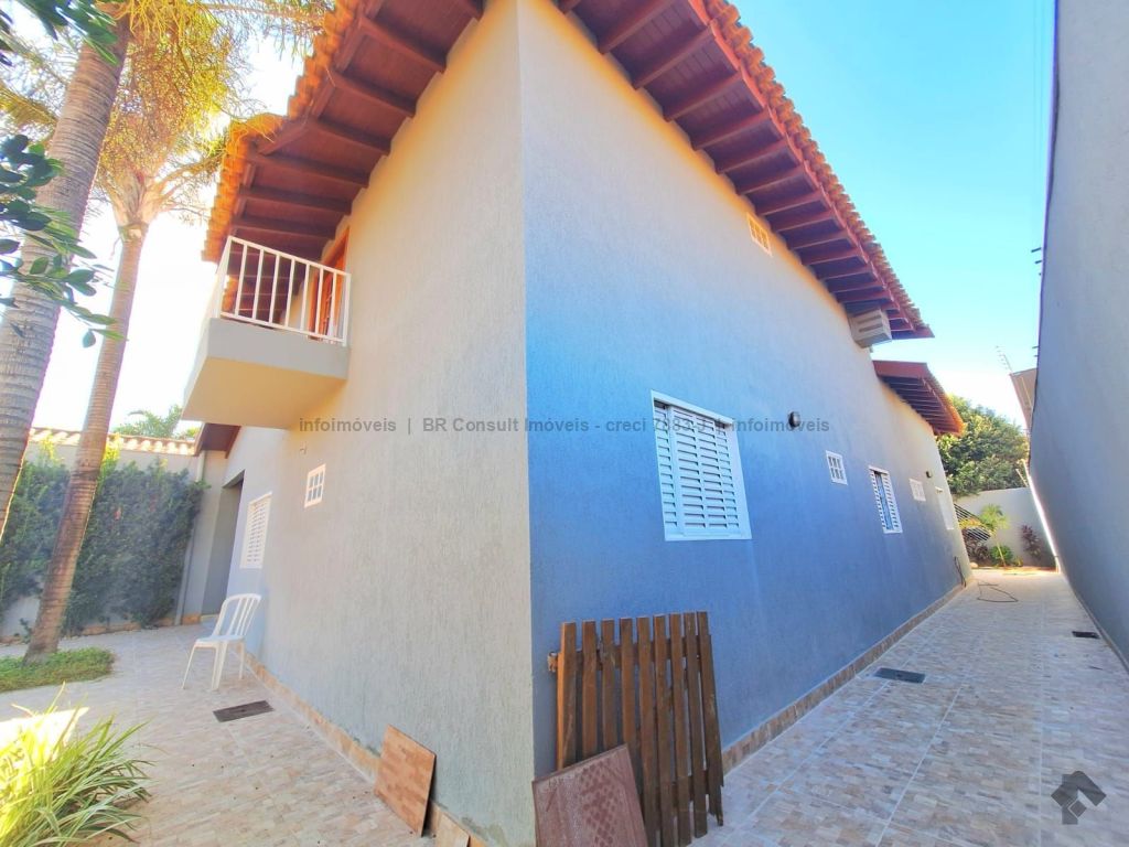 Sobrado com área total de 435,00 m² e área construída de 270,00 m², possui na parte externa 3 vagas de garagem, sendo 2 cobertas e 1 descoberta, portão de elevação com motor, portão social, jardim, cerca elétrica, varanda, piscina, espaço gourmet com churrasqueira, pia, balcão em granito, despensa, edícula com 1 apartamento (quarto com banheiro) e 1 WC de serviço. Piso inferior: sala de estar com porta pivotante, pé direito alto, copa, cozinha planejada com coifa, torneira de água quente, despensa, lavanderia coberta, 1 WC social com box, torneira de água quente, armário embutido, 1 suíte com armário embutido e 2 quartos. Piso superior: escada toda em madeira nobre, escritório, lavabo, sala íntima.