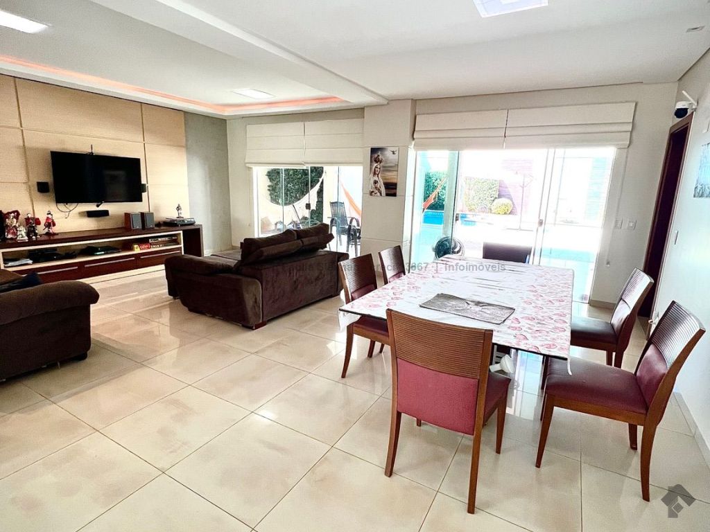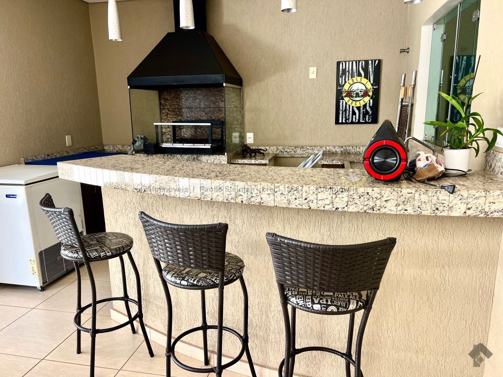 Ampla área social. Sala espaçosa para 4 ambientes: estar, jantar, TV e social. Espaço versátil no térreo, 1 quarto (ou escritório), lavabo e cozinha planejada com bancada em mármore e armários sob medida. Área de serviço completa, lavanderia coberta e com armários. Garagem para 5 veículos, sendo 3 vagas cobertas e 2 descobertas. Piso superior: 3 suítes espaçosas, todas com sacada. A suíte master conta com um elegante closet e banheira com hidromassagem no banheiro. Ambiente extra multifuncional, pode ser um 4º quarto, sala de jogos ou home theater, integrado a uma sacada ampla com vista deslumbrante da cidade. Área gourmet completa com churrasqueira e piscina aquecida.
