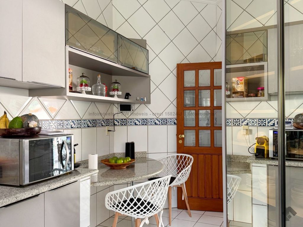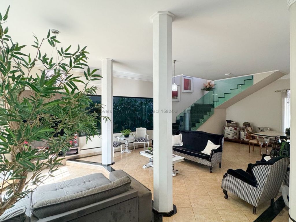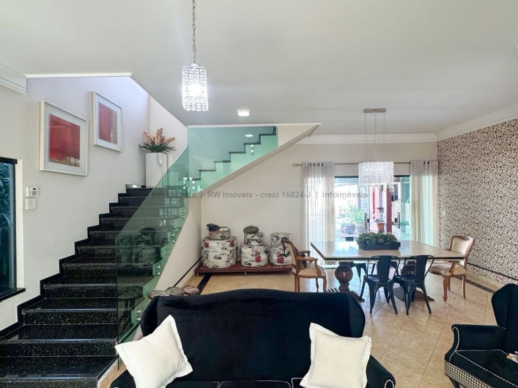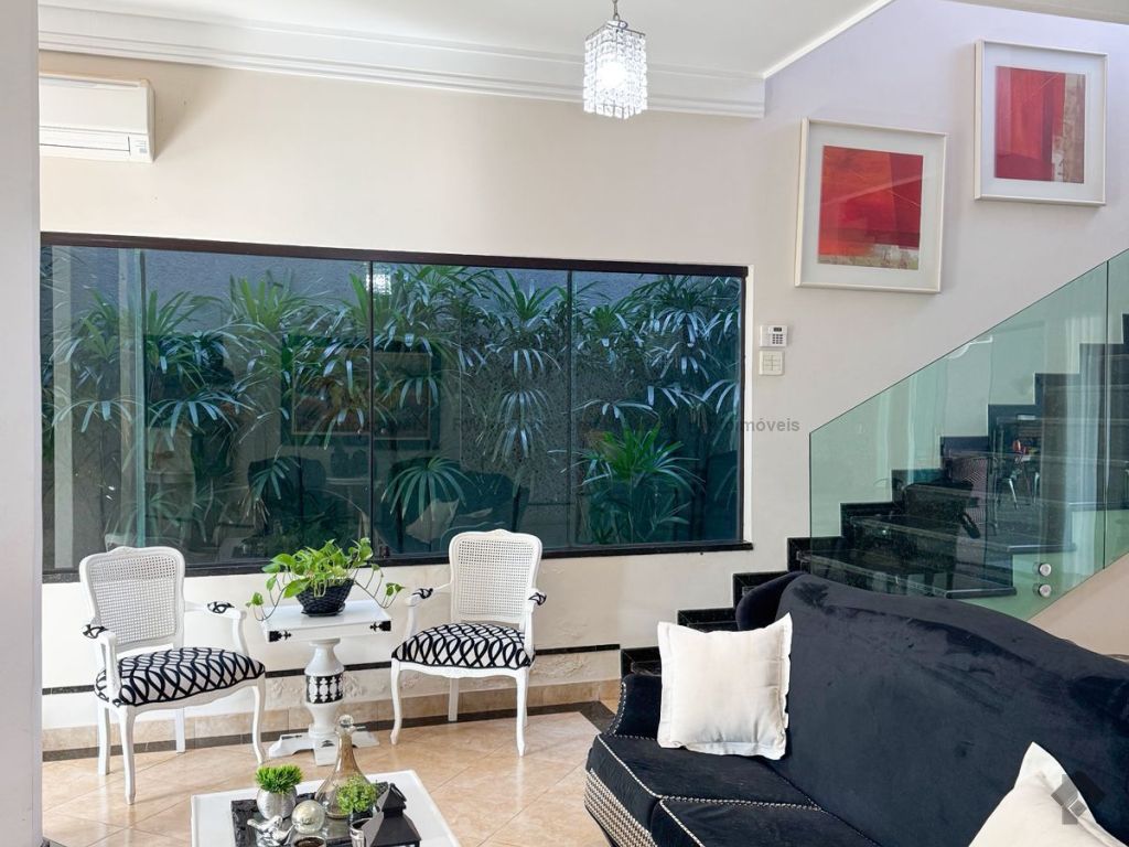 Ao entrar, você é recepcionado por um hall que dá acesso à ampla sala com três ambientes, lavabo e cozinha planejada, além de despensa e área de serviço. A área externa conta com uma charmosa varanda gourmet com churrasqueira e piscina, perfeita para momentos de lazer. No pavimento superior, estão três quartos, sendo uma suíte com closet, sacada e todos com móveis planejados, além de um hall íntimo e banheiro social. A escada em granito preto traz sofisticação ao ambiente. Para completar, o imóvel possui garagem coberta para até três veículos.