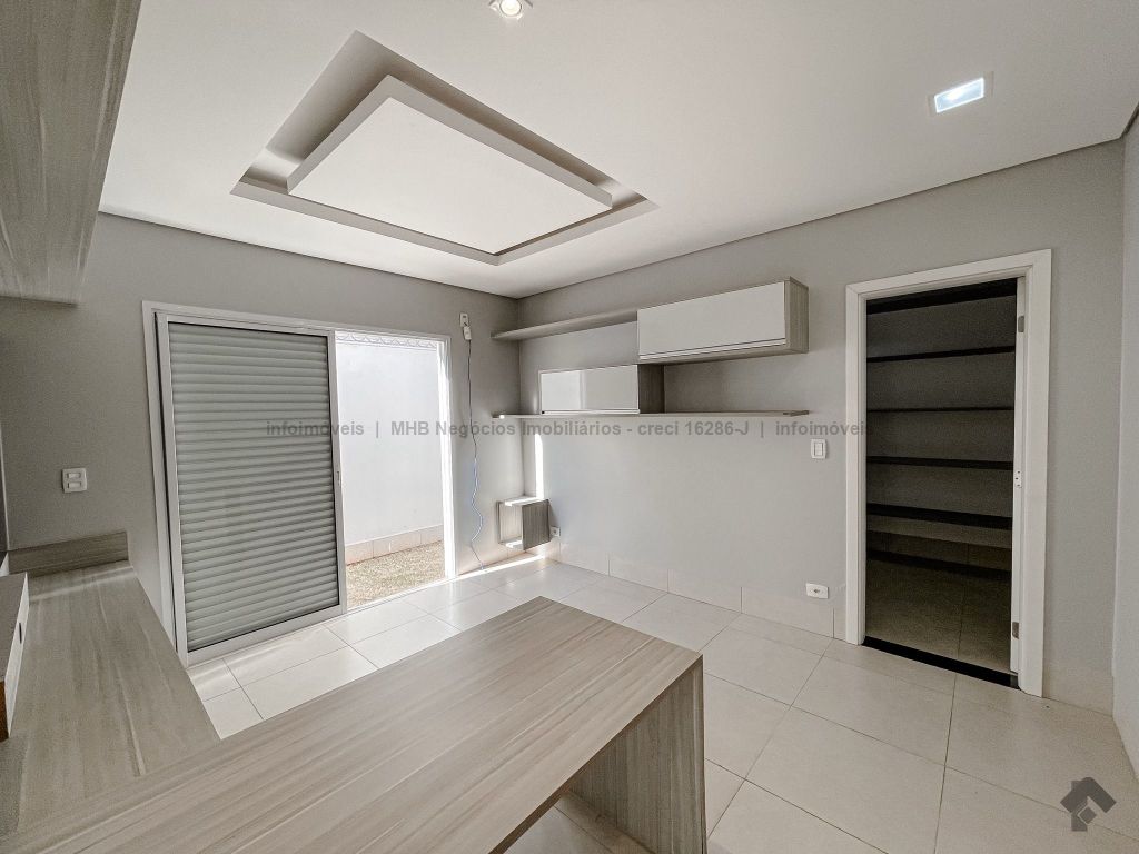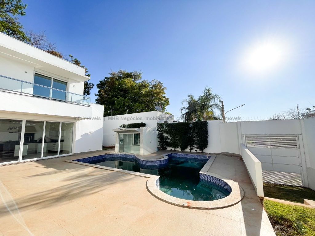 Oferece acabamentos de altíssimo padrão e design moderno, possui isolamento acústico com tijolo duplo. A casa possui 6 vagas de garagem e conta com uma entrada secundária na rua sem saída pelos fundos, oferecendo assim mais uma vaga de garagem. Localizado em um dos bairros mais nobres de Campo Grande.