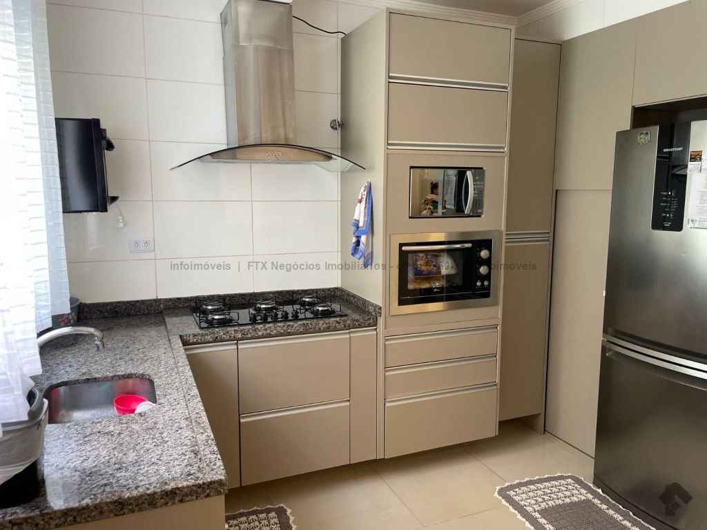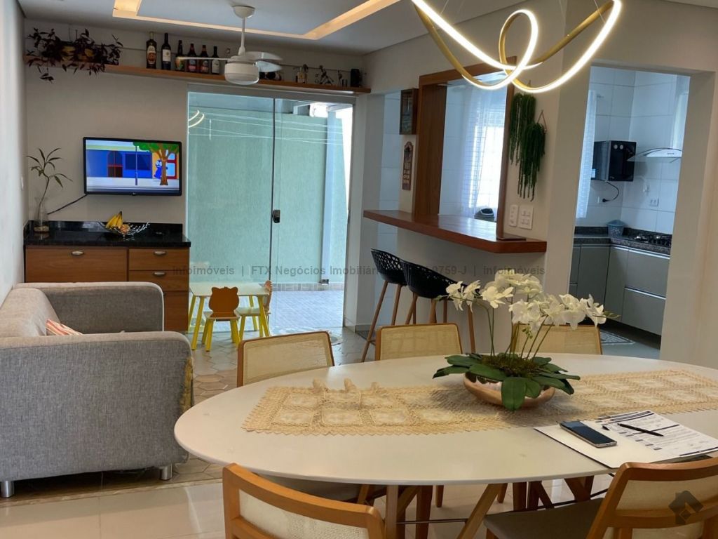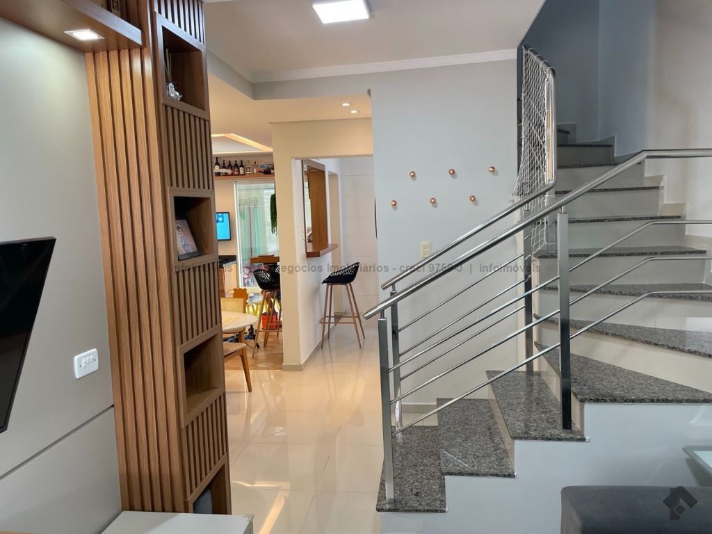 Sobrado localizado em um dos bairro mais nobres da cidade com toda segurança e tranquilidade para seu o seu novo lar. No piso inferior (térreo): sala de estar, sala de TV, lavabo, cozinha rica em móveis planejados, área de serviço coberta, duas vagas de garagem e escada que dá acesso ao piso superior que contém banheiro social, 03 quartos planejados com ar condicionado split, sendo uma suíte, ambiente moderno e fino acabamento. Otimização máxima do espaço interno. E conta ainda com aquecedor solar, energia fotovoltaica e câmeras de segurança.