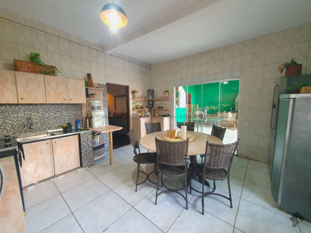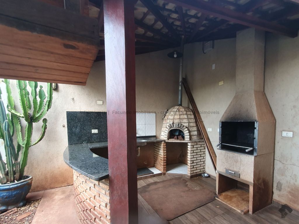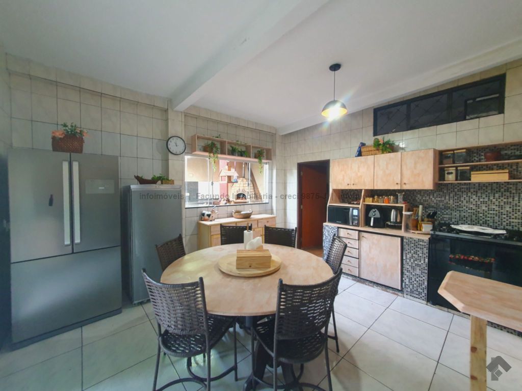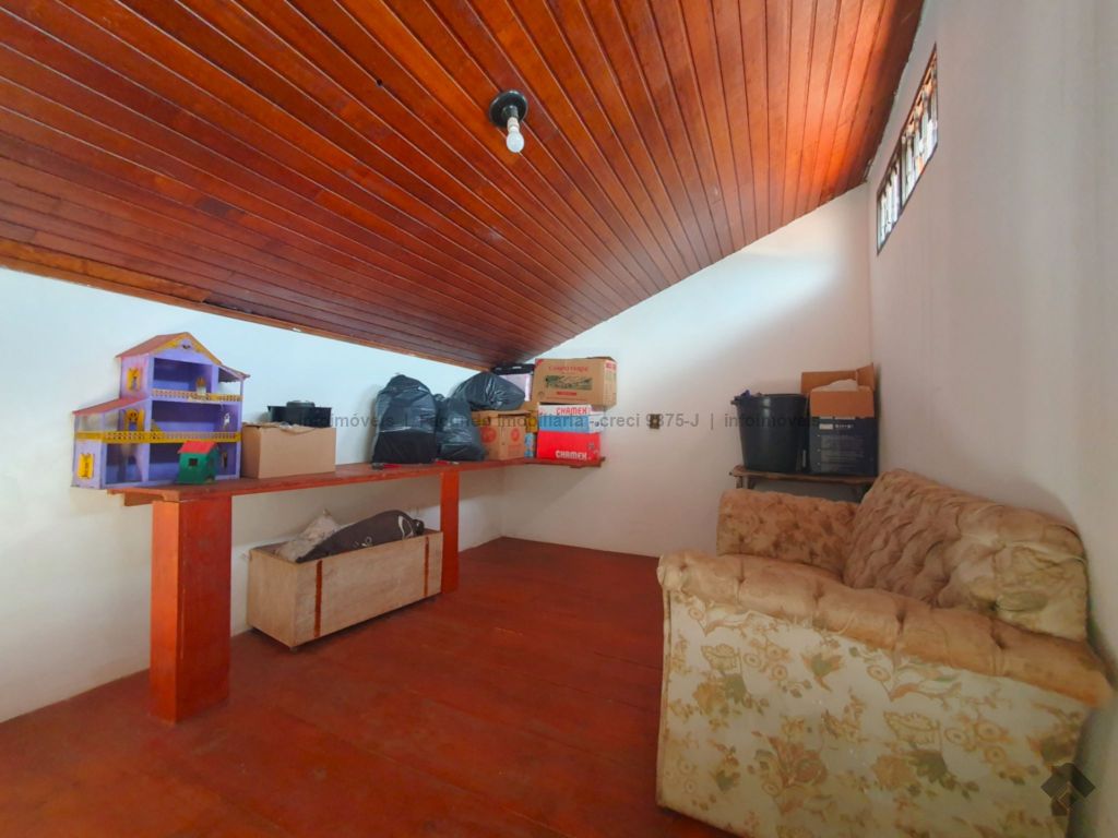 Piso superior: 01 suíte com closet, 02 quartos, banheiro social, área de serviço e sala de TV. Térreo: hall, sala de estar, lavabo, 01 escritório com banheiro, sala de jantar, cozinha, despensa, 02 varandas com churrasqueira, forno e fogão à lenha, 01 quarto de brinquedos e até 02 vagas de garagem.
