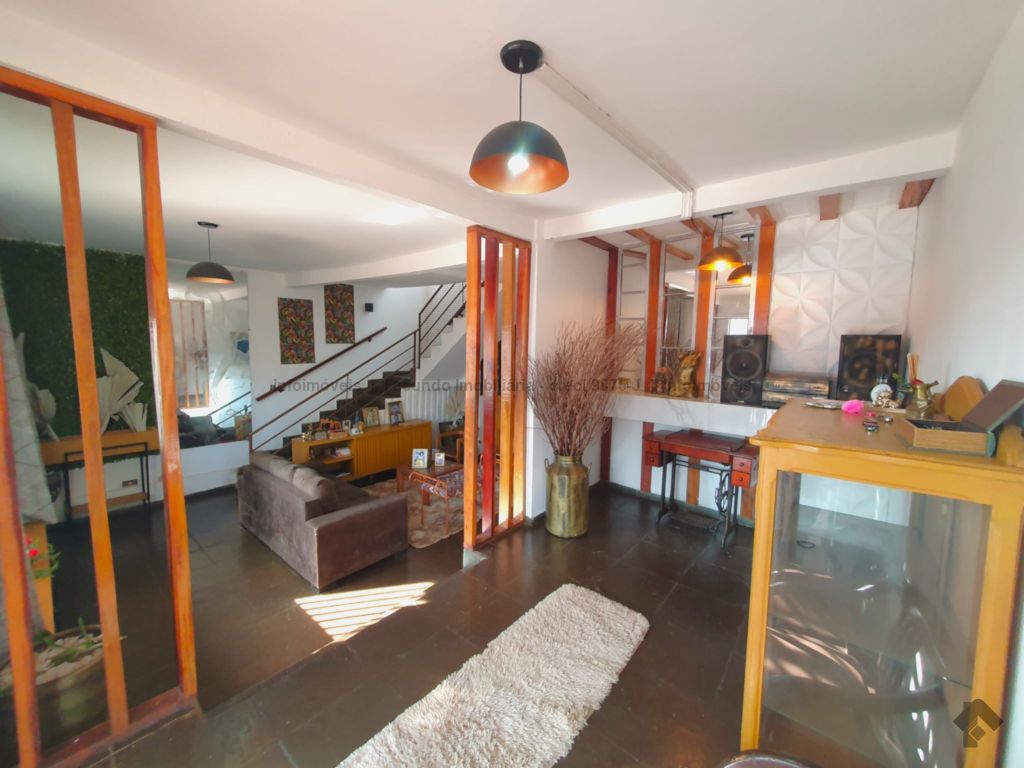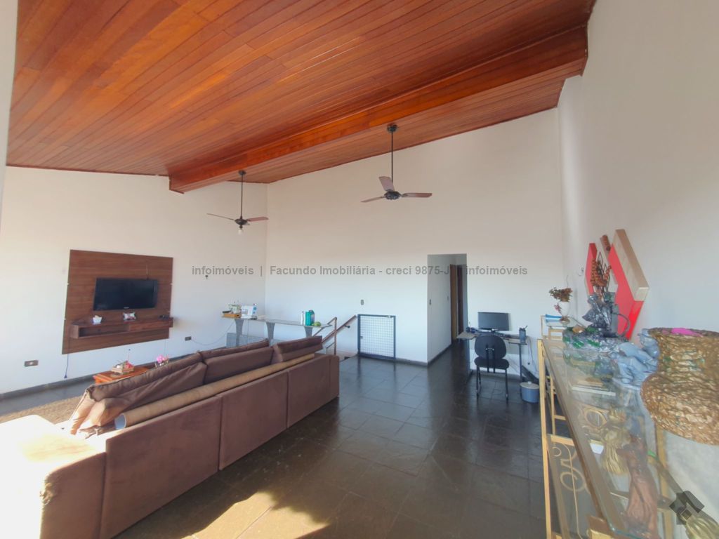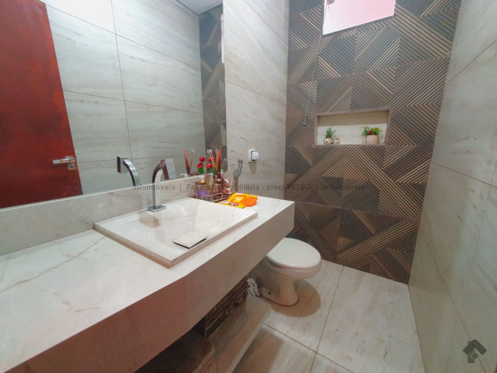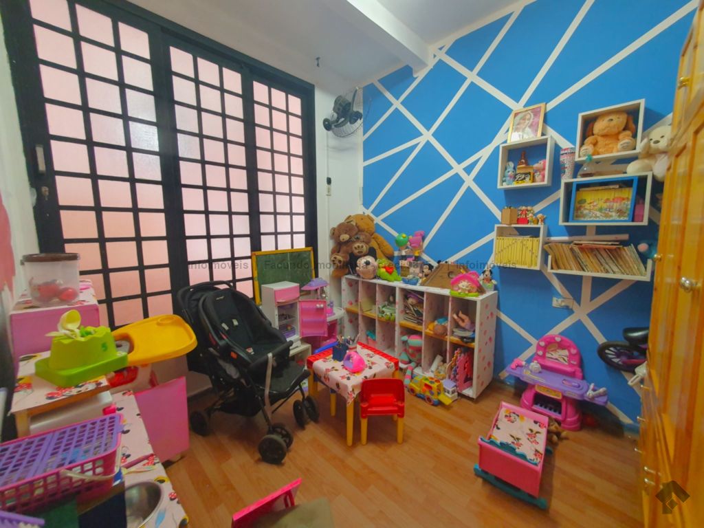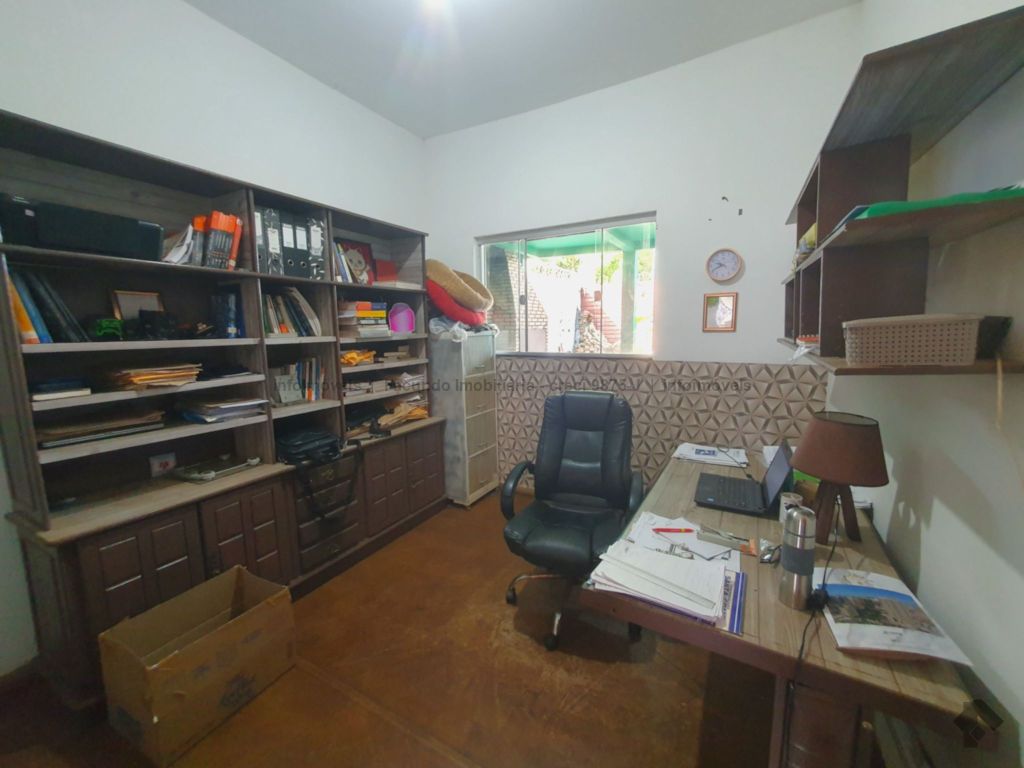 Piso superior: 01 suíte com closet, 02 quartos, banheiro social, área de serviço e sala de TV. Térreo: hall, sala de estar, lavabo, 01 escritório com banheiro, sala de jantar, cozinha, despensa, 02 varandas com churrasqueira, forno e fogão à lenha, 01 quarto de brinquedos e até 02 vagas de garagem.
