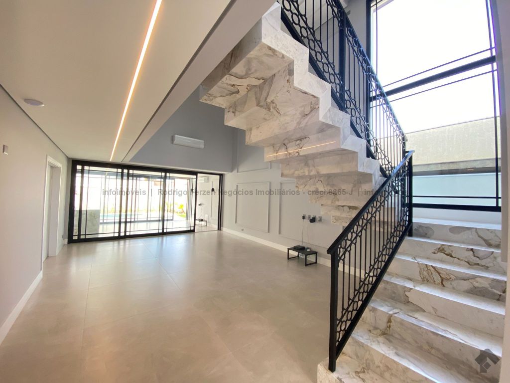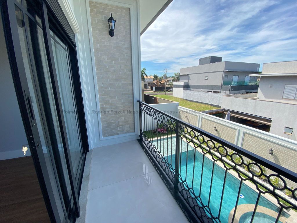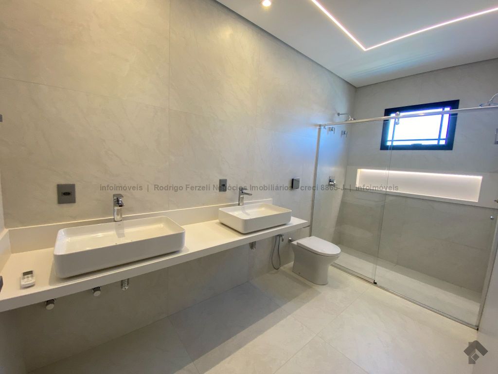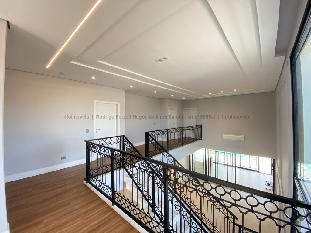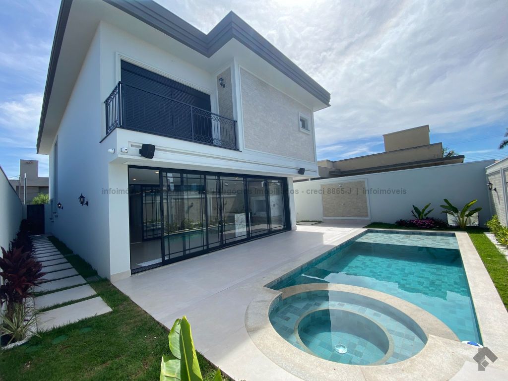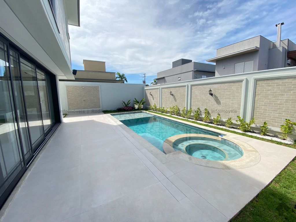 Piso superior com: 01 suíte master, 02 suítes e uma sala de TV, piso térreo com 01 suíte que pode ser usado de escritório, lavabo, living room, ampla sala, cozinha, espaço gourmet, WC externo, piscina aquecida.