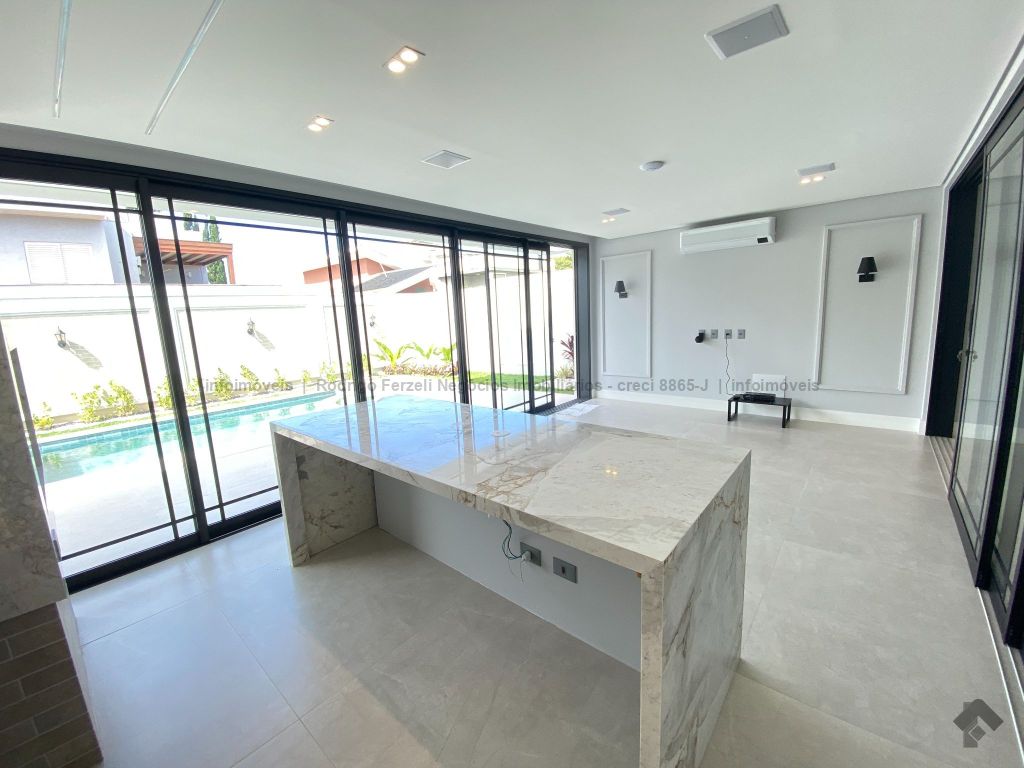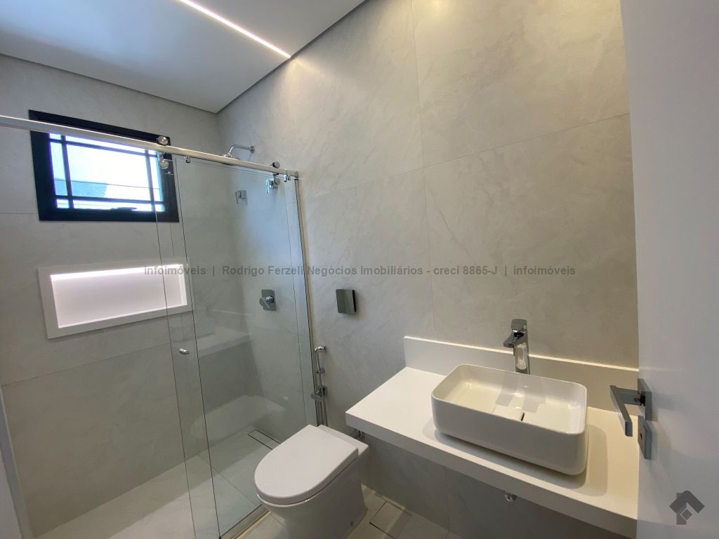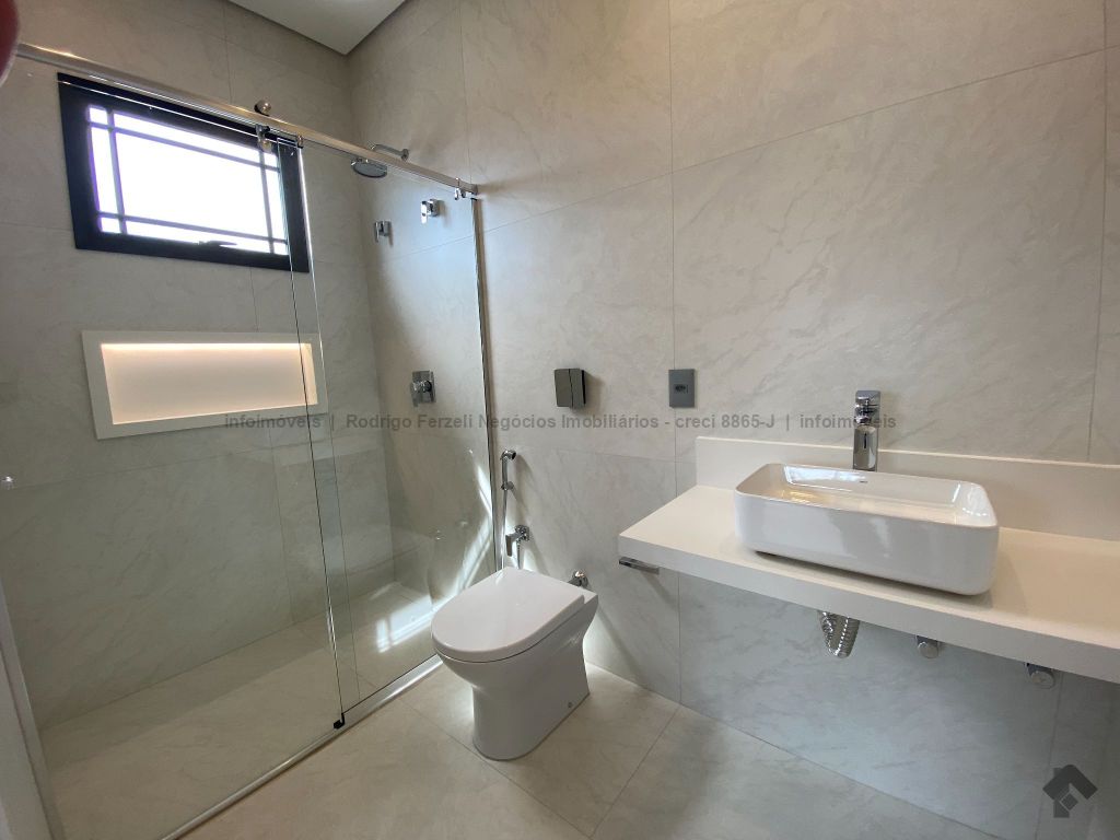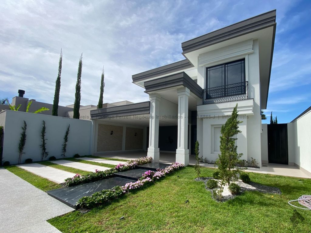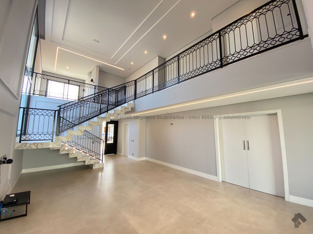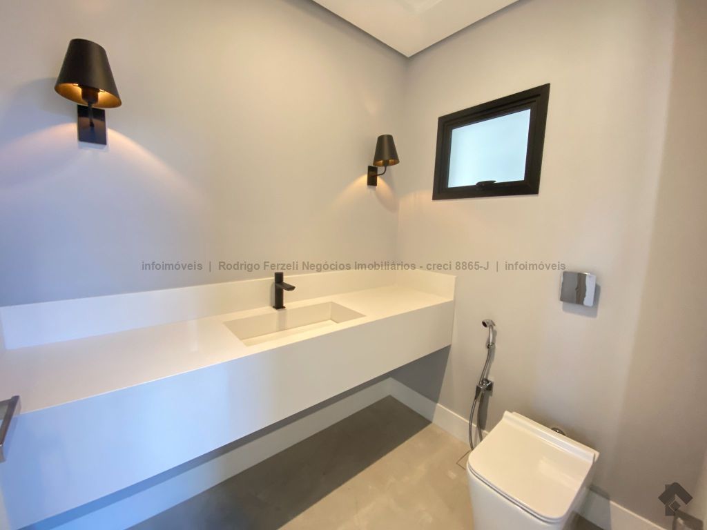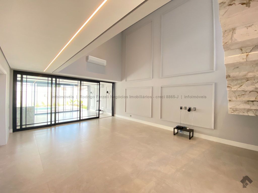 Piso superior com: 01 suíte master, 02 suítes e uma sala de TV, piso térreo com 01 suíte que pode ser usado de escritório, lavabo, living room, ampla sala, cozinha, espaço gourmet, WC externo, piscina aquecida.