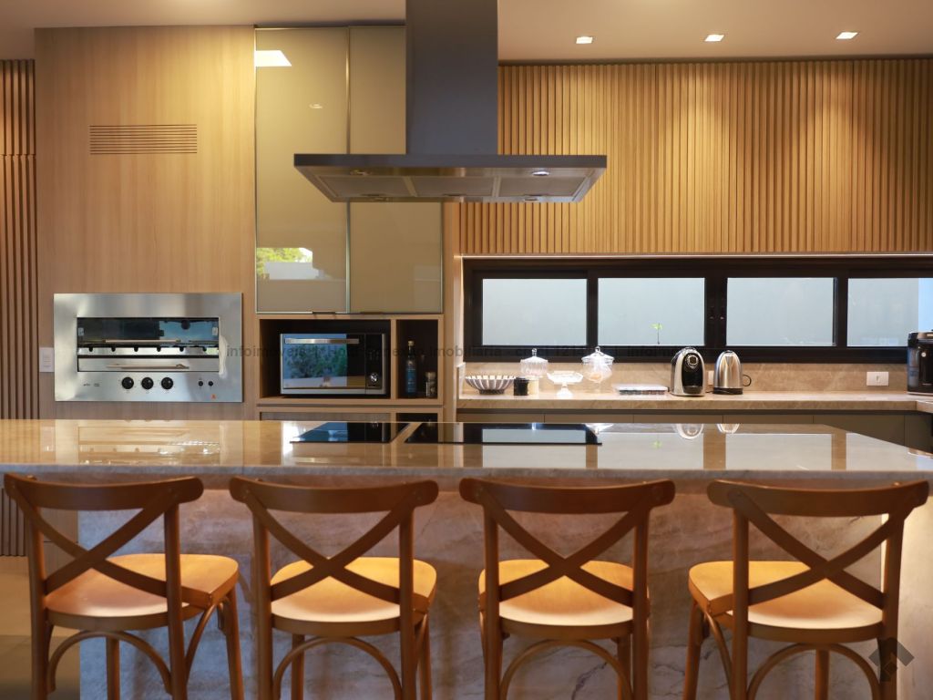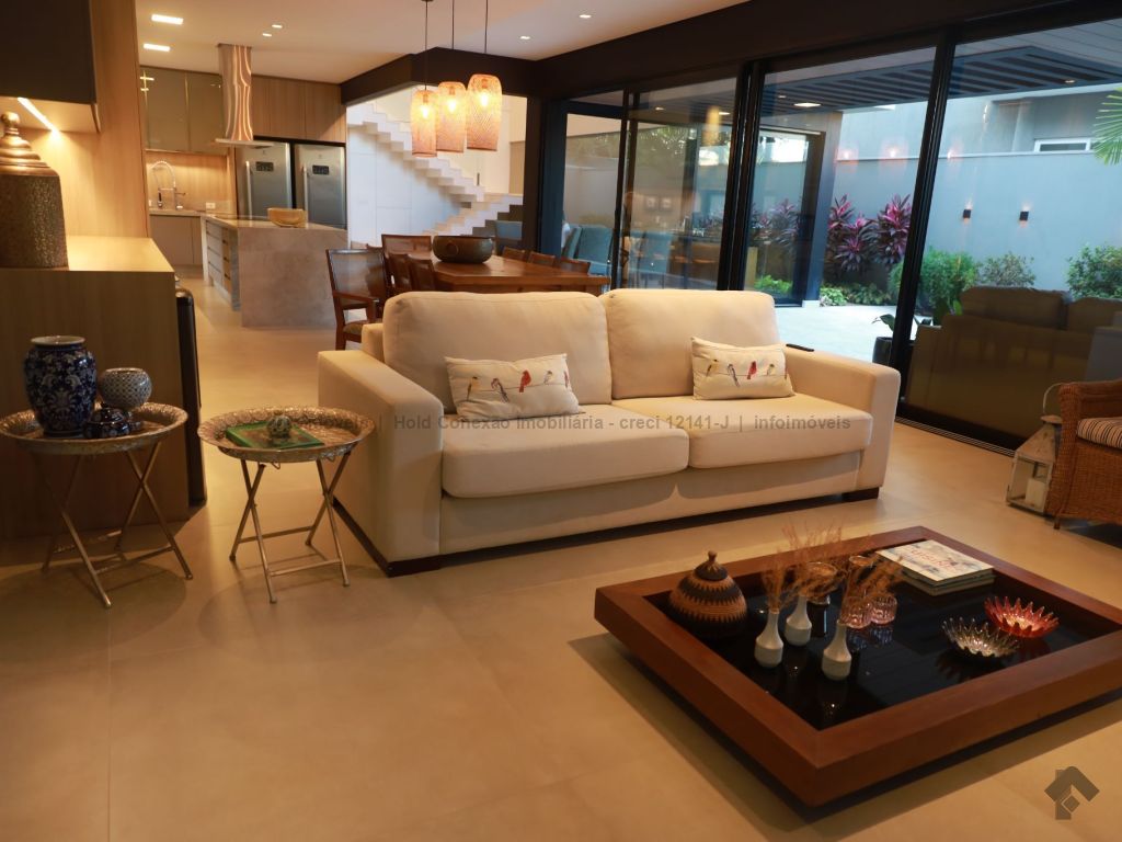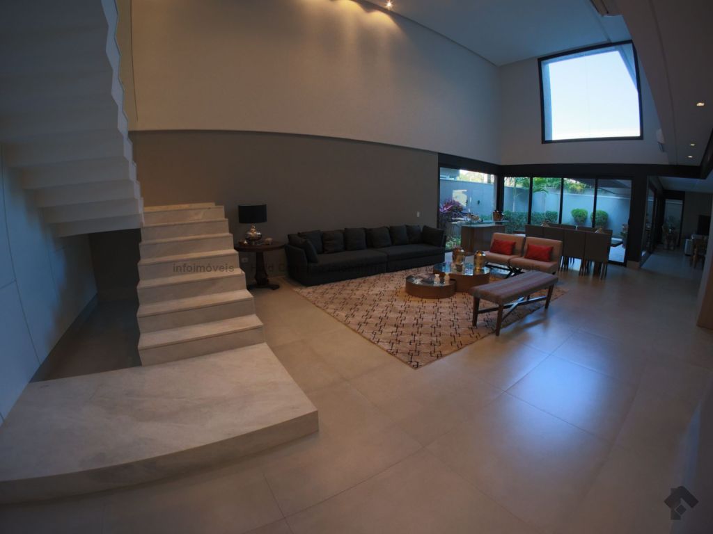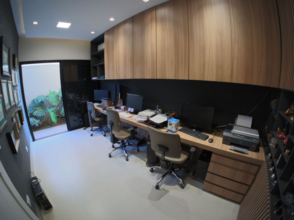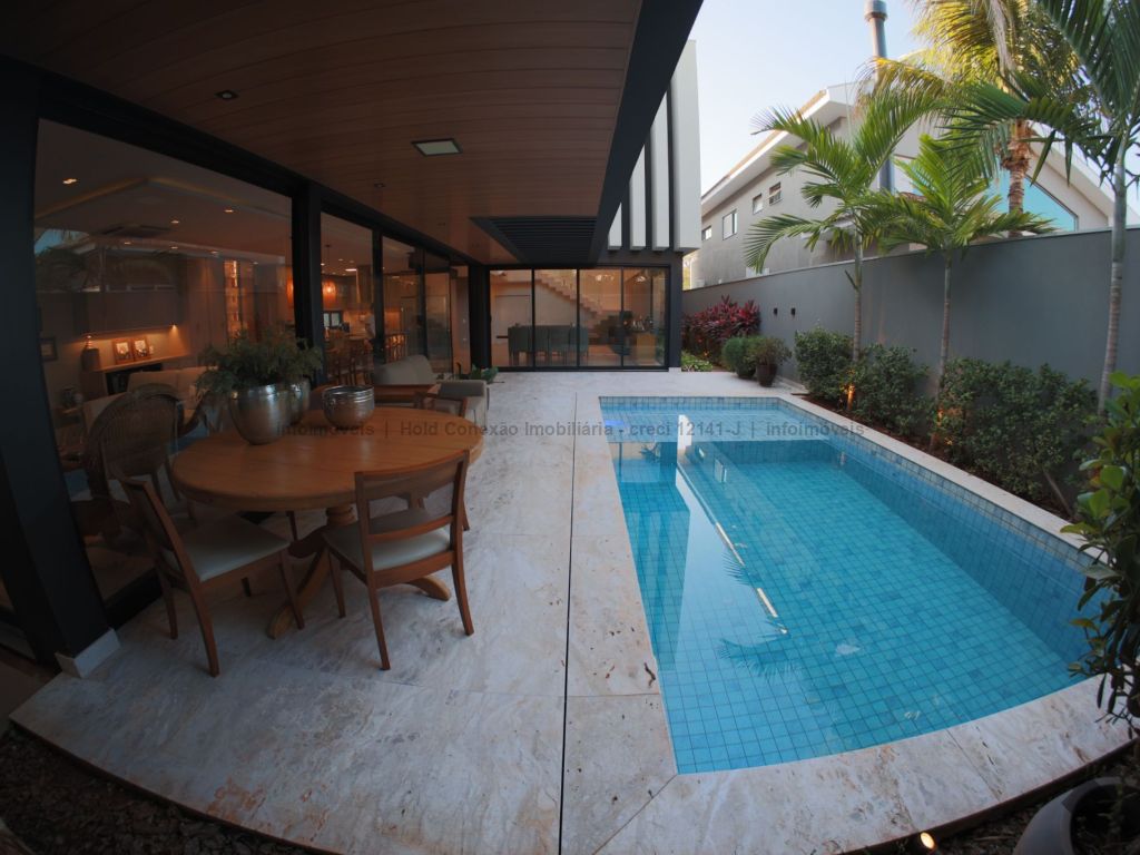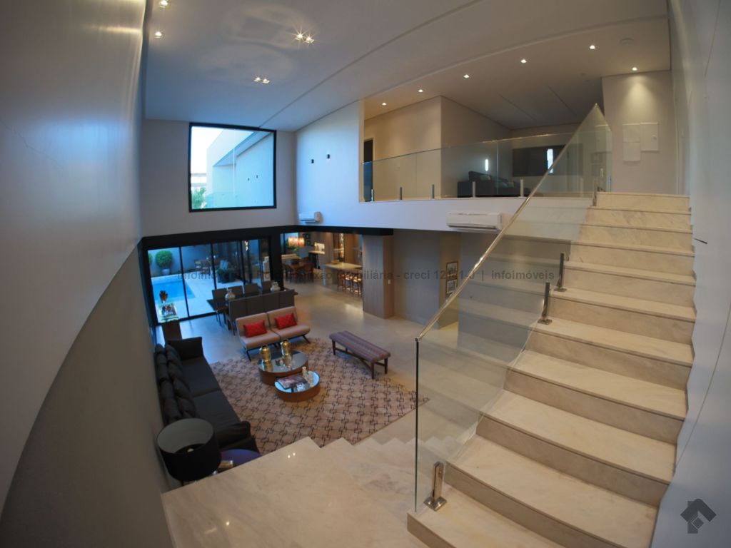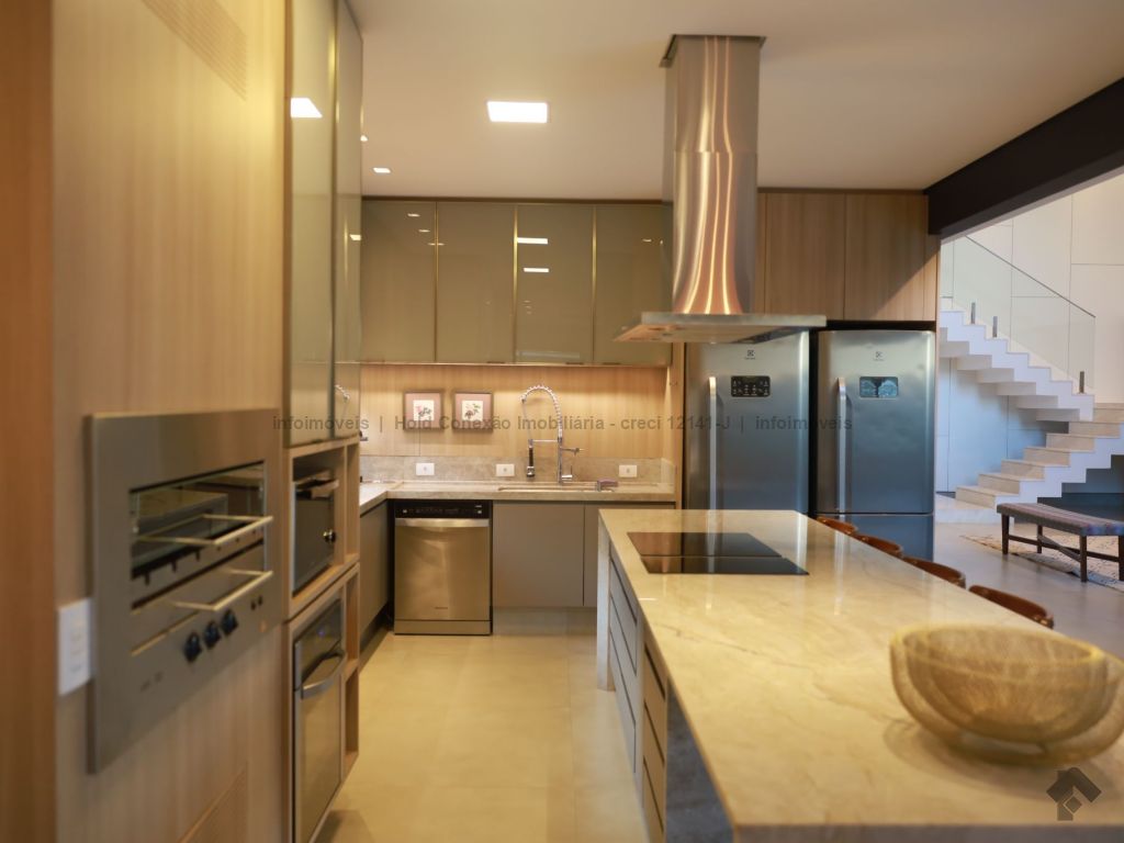 495m² de terreno. 466m² de área construída. Quatro suítes sendo uma no piso térreo, escritório, lavabo, espaço gourmet integrado, preparação para elevador, casa inteligente com automação, energia fotovoltaica e aquecimento solar.