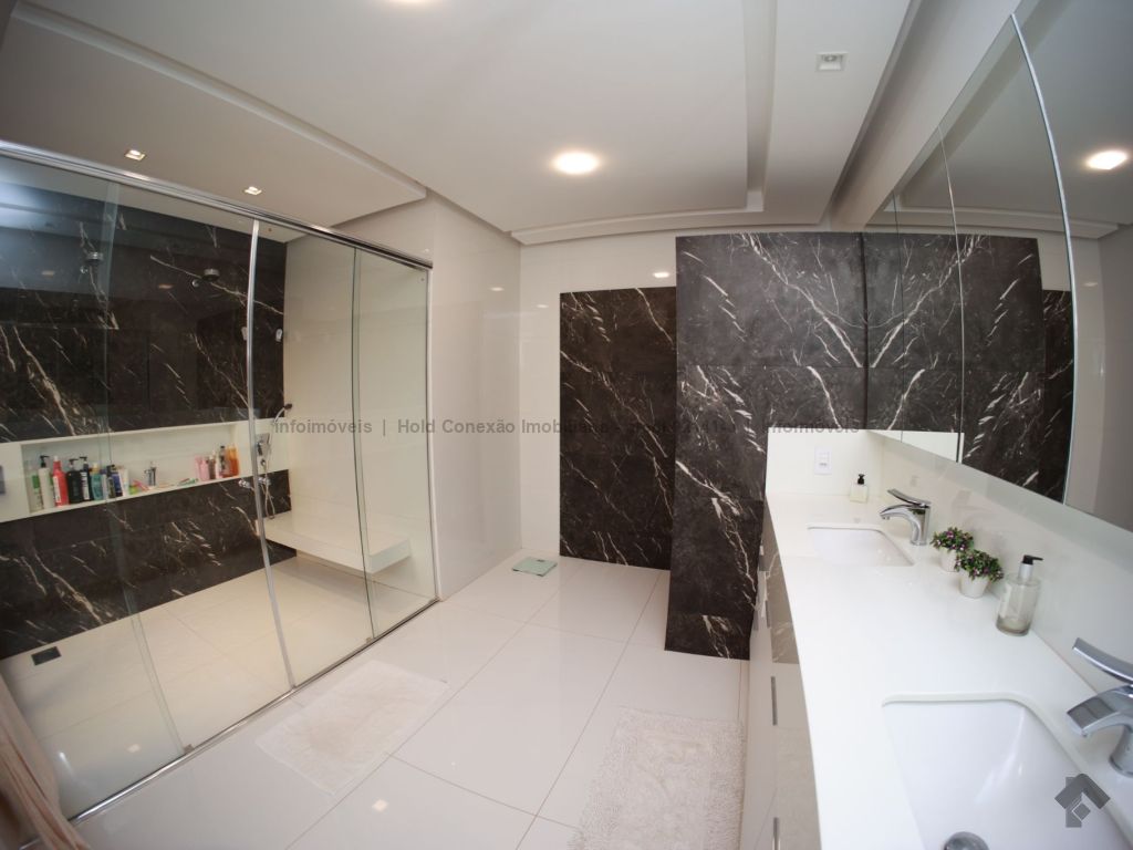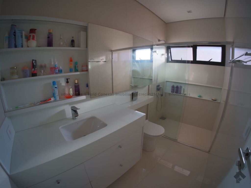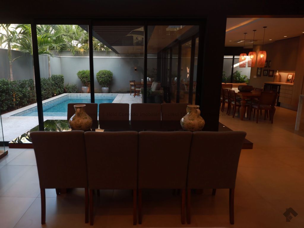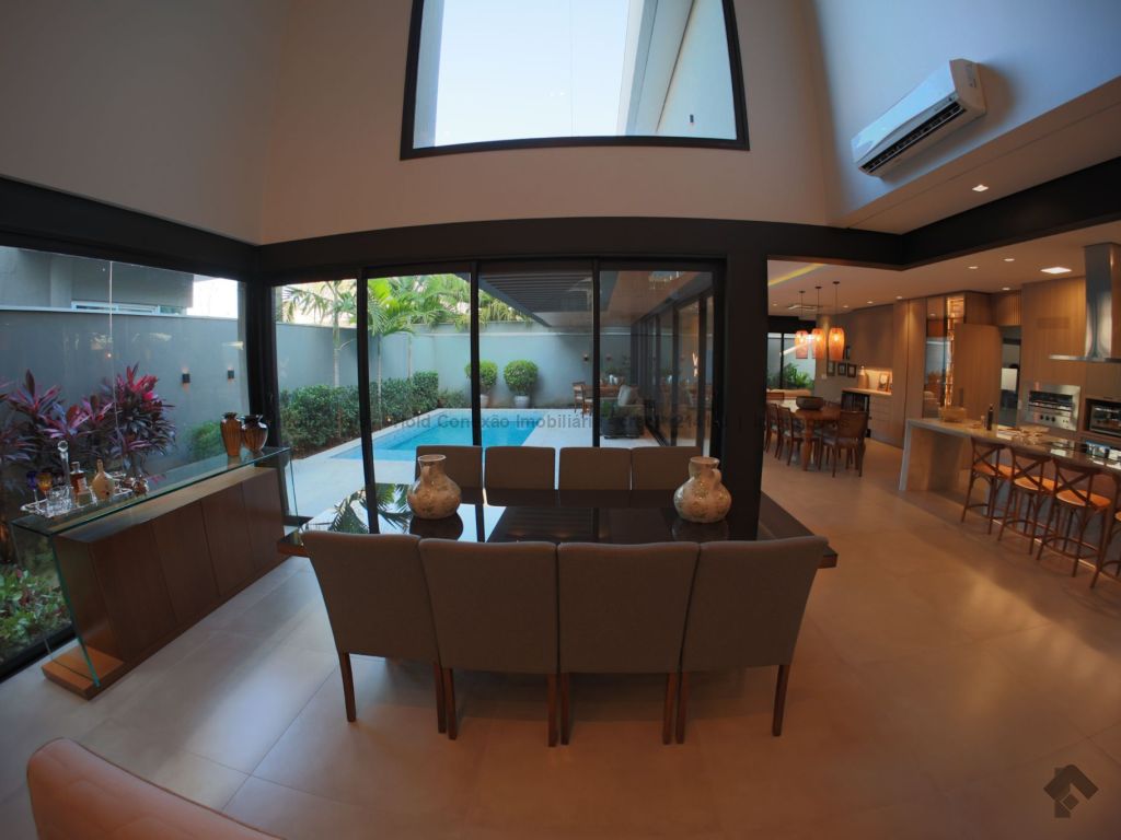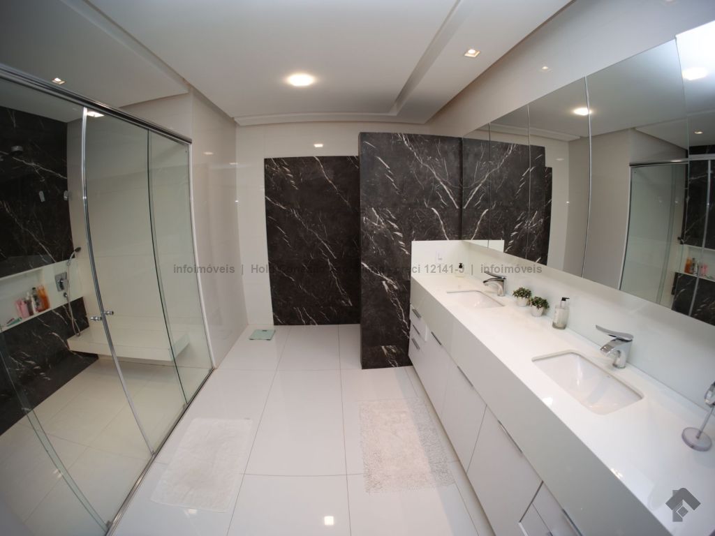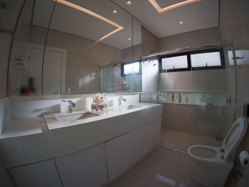 495m² de terreno. 466m² de área construída. Quatro suítes sendo uma no piso térreo, escritório, lavabo, espaço gourmet integrado, preparação para elevador, casa inteligente com automação, energia fotovoltaica e aquecimento solar.