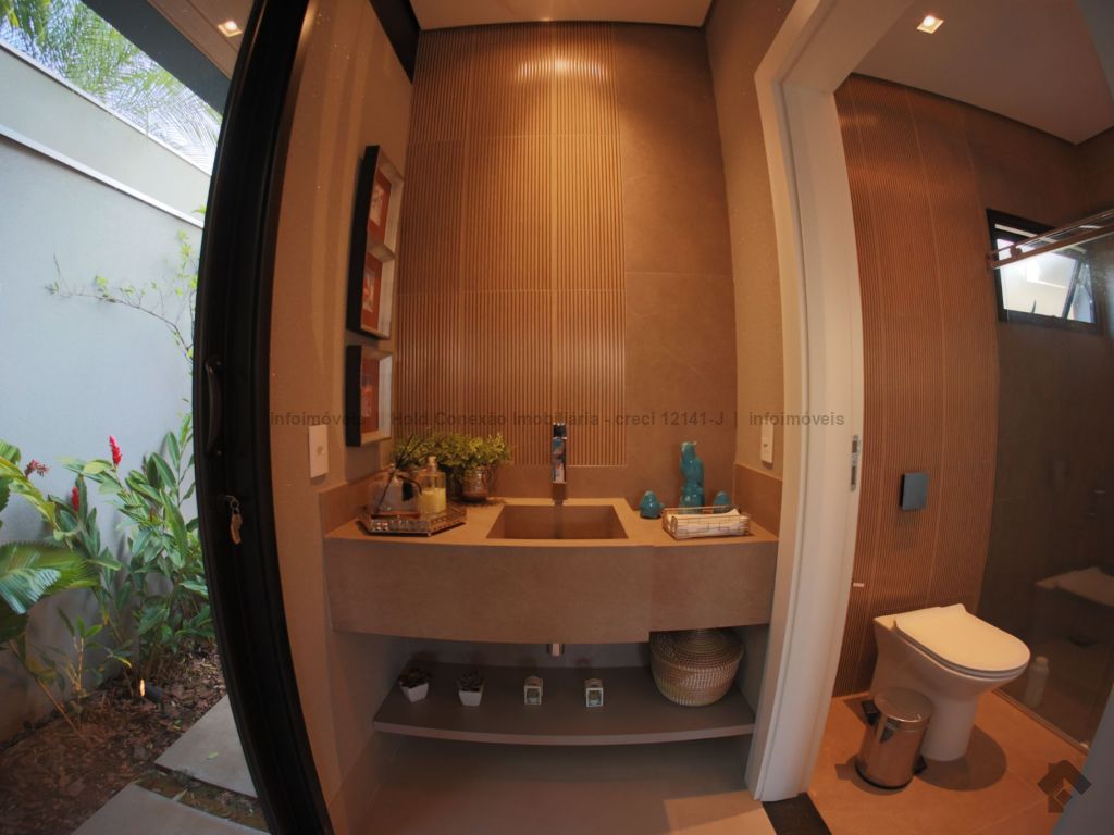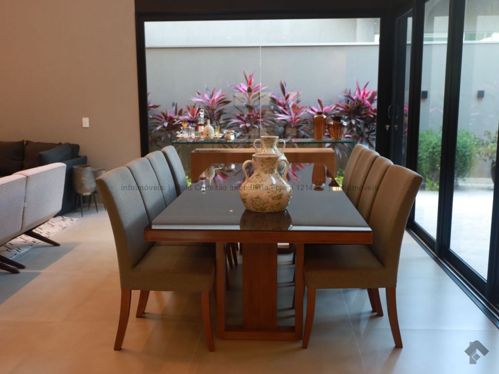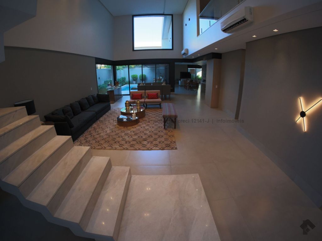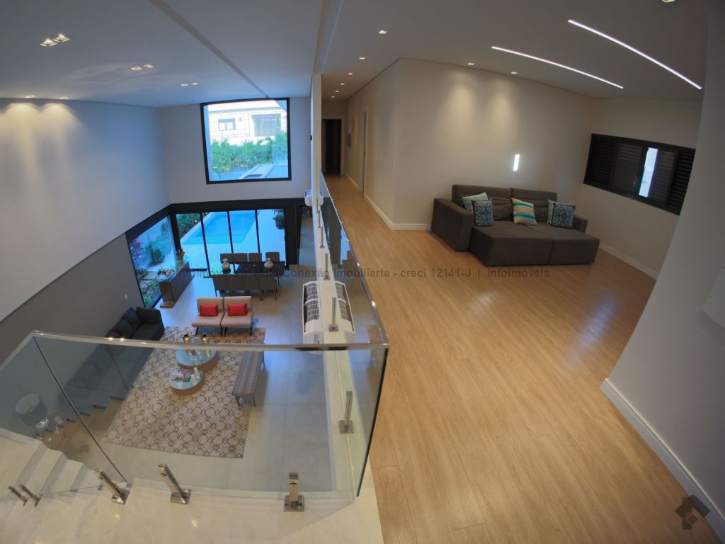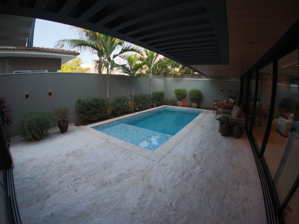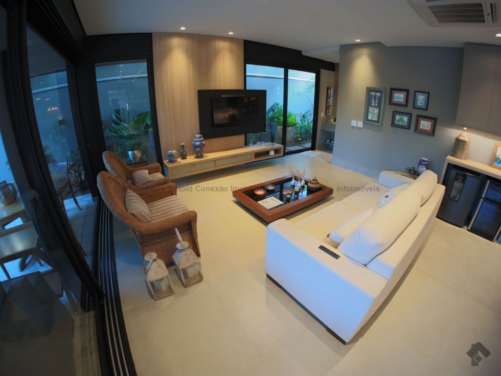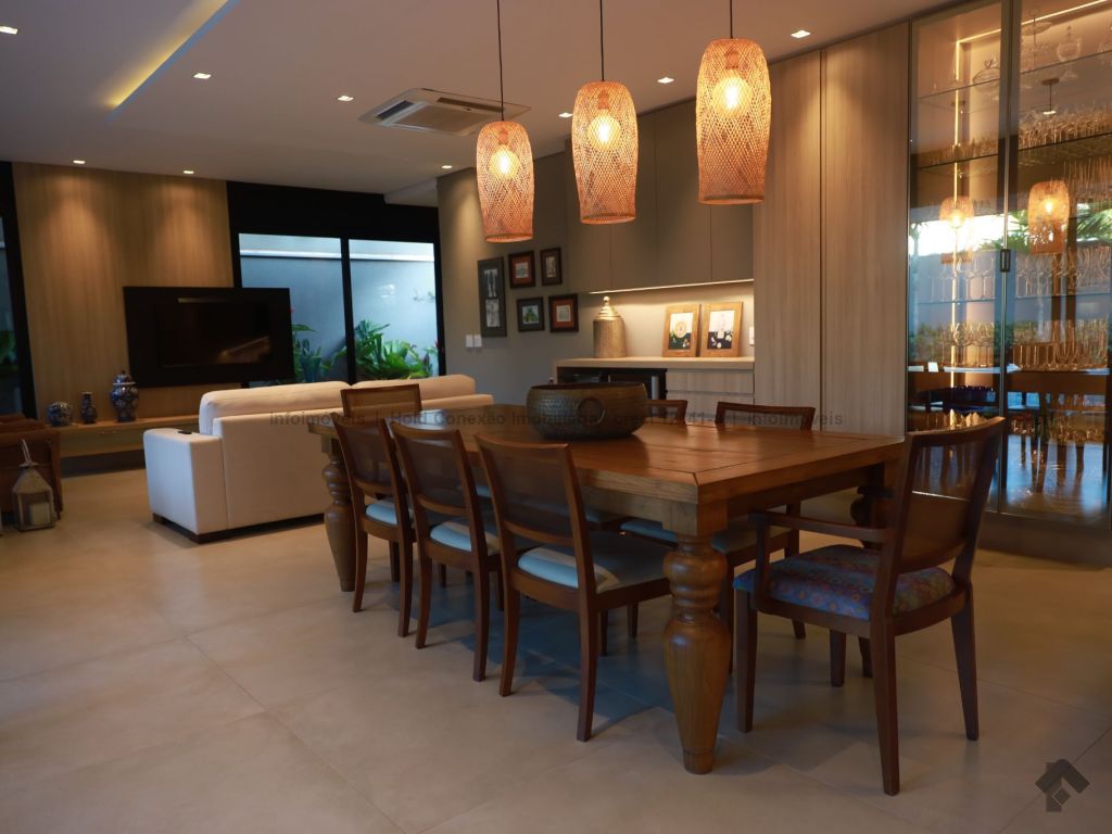 495m² de terreno. 466m² de área construída. Quatro suítes sendo uma no piso térreo, escritório, lavabo, espaço gourmet integrado, preparação para elevador, casa inteligente com automação, energia fotovoltaica e aquecimento solar.