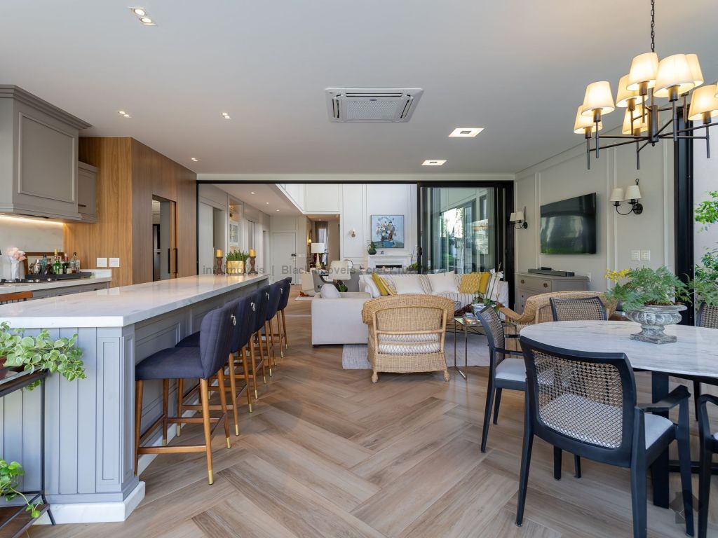 Residência contemporânea que une sofisticação e funcionalidade. Conta com hall de entrada, 3 suítes com closet, sendo 1 master, além de escritório, living integrado com ambientes amplos, espaço gourmet completo, sala íntima com banheiro, cozinha planejada, lavanderia e banheiro de serviço. Para maior comodidade, dispõe ainda de lavabo interno e lavabo externo. Na área de lazer, o destaque é a piscina, perfeita para momentos de descanso e convivência.