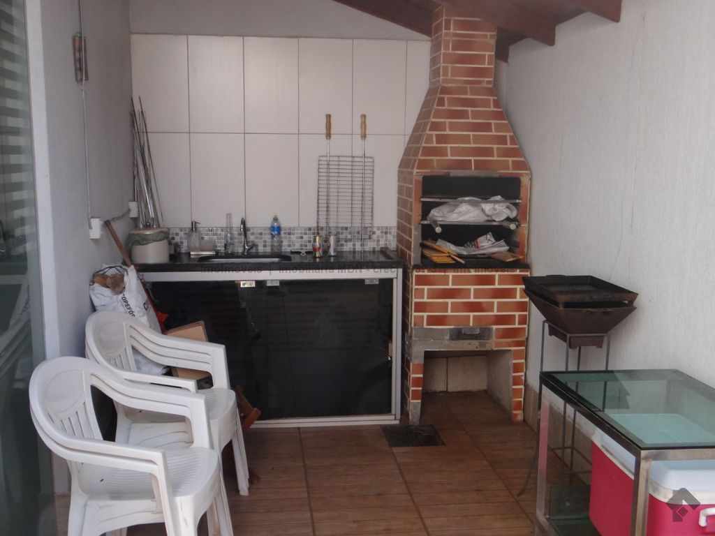 Sobrado condomínio: 1 suíte, 2 quartos, wc social, sala, cozinha, churrasqueira.