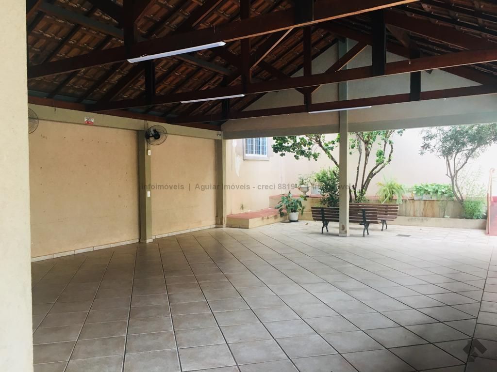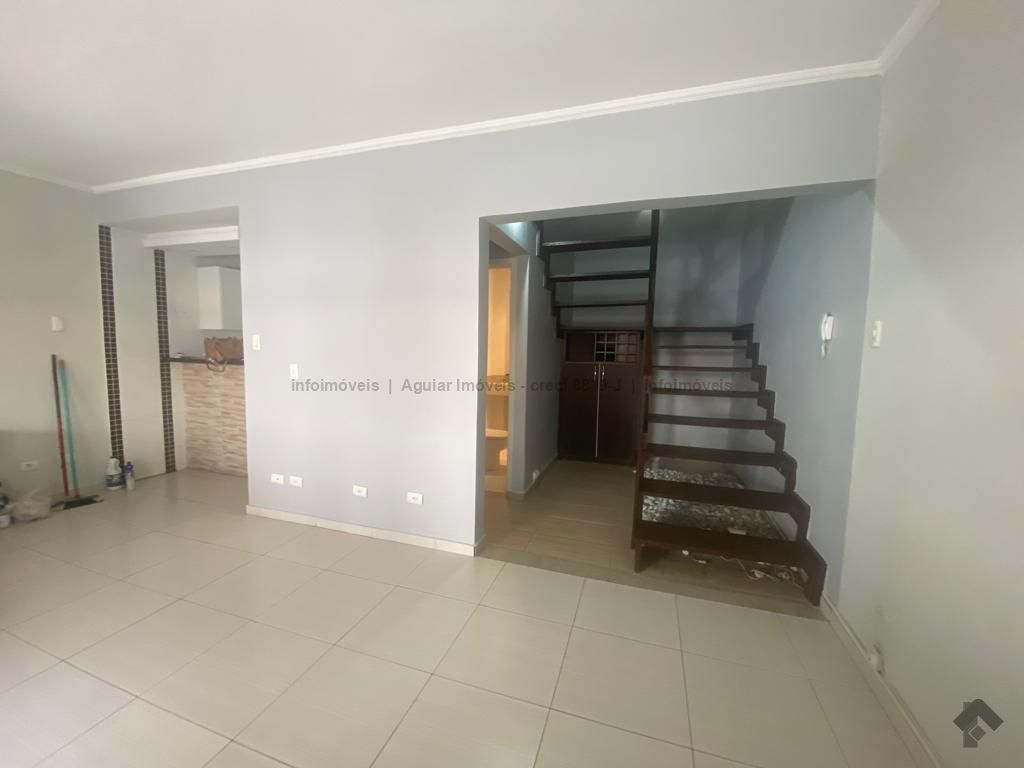 No piso térreo, há uma sala com dois ambientes, lavabo, cozinha planejada, área de serviço, espaço gourmet e duas vagas de garagem. No segundo piso, há uma suíte, dois quartos e banheiro social. No condomínio, há área de lazer com churrasqueira, piscina para adultos, piscina para crianças, salão de festas, playground e sauna.