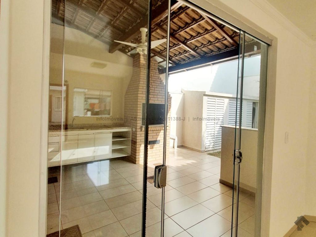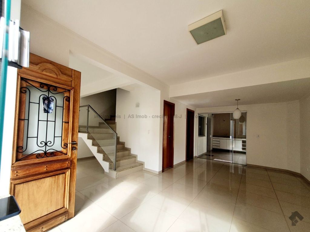 2 vagas de garagem. Piso inferior: sala para três ambientes (estar, tv e jantar), lavabo, cozinha com armários planejados, despensa, área de serviço, banheiro para funcionária, varanda com churrasqueira, depósito com três compartimentos, piso superior: 1 suíte com armário planejado e sacada, 1 dormitório com armário, 1 dormitório e banheiro.